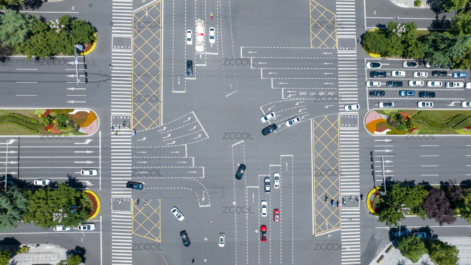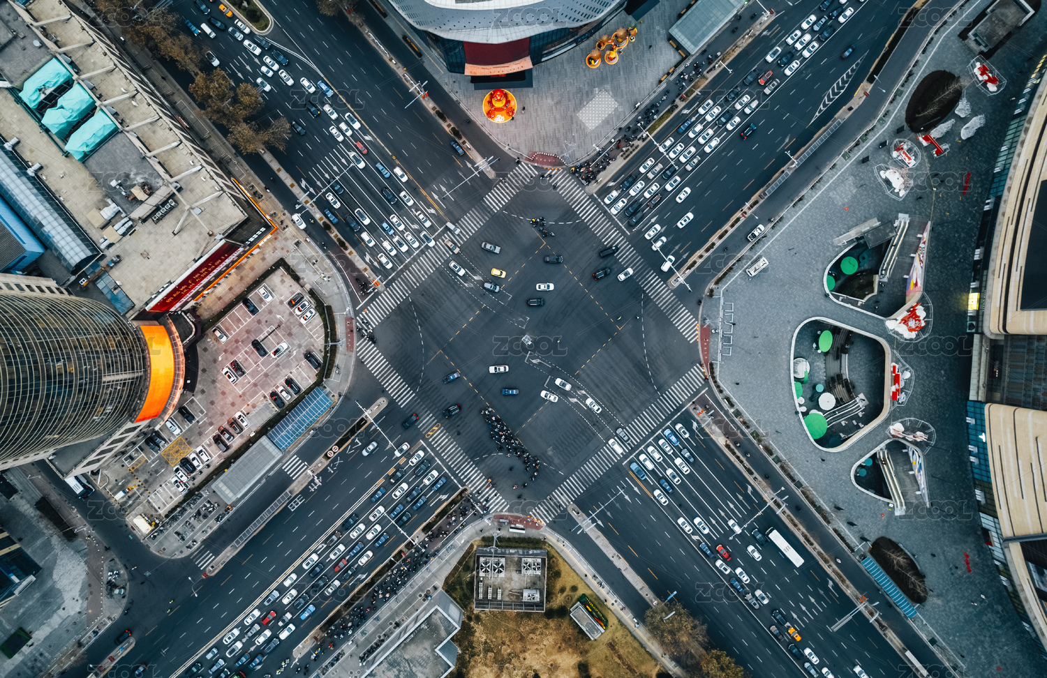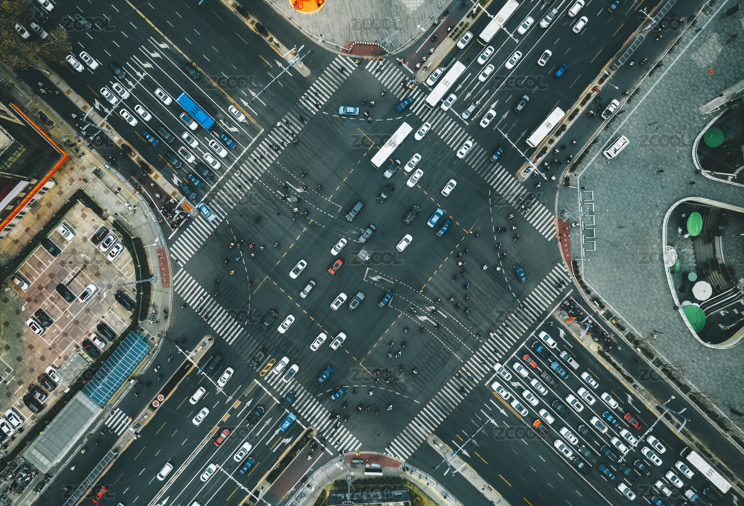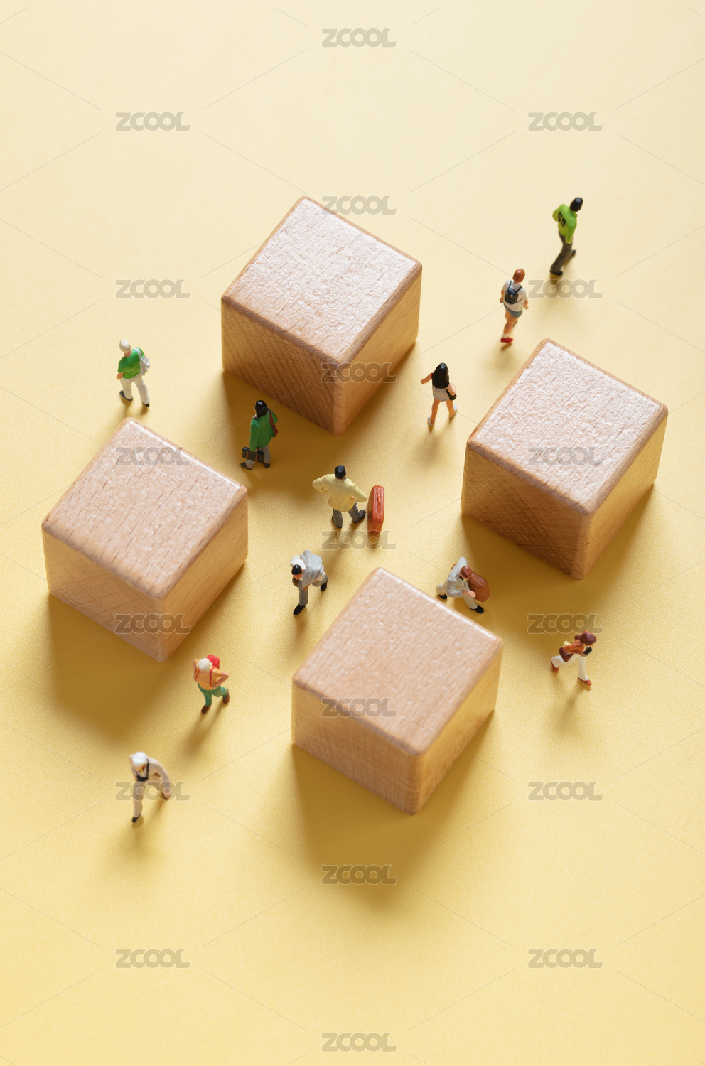 微縮創(chuàng)意十字路口不同方向行進的人群