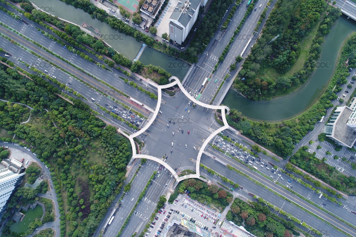 河北石家莊橋西區(qū)萬象城商圈十字路口航拍