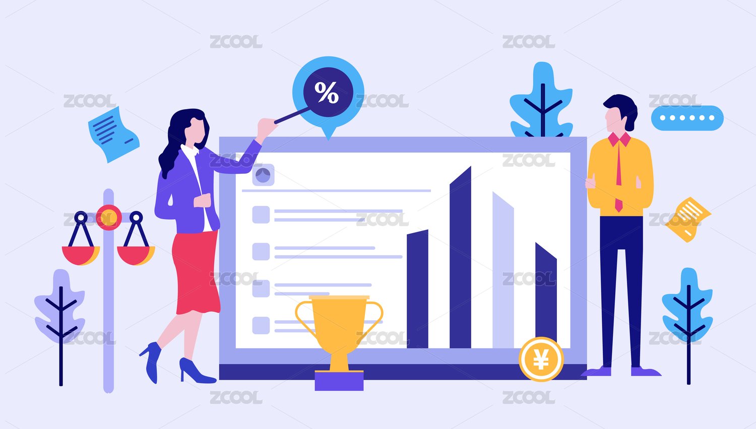 網(wǎng)絡(luò)會議中預(yù)測企業(yè)利潤增長的概念插畫
