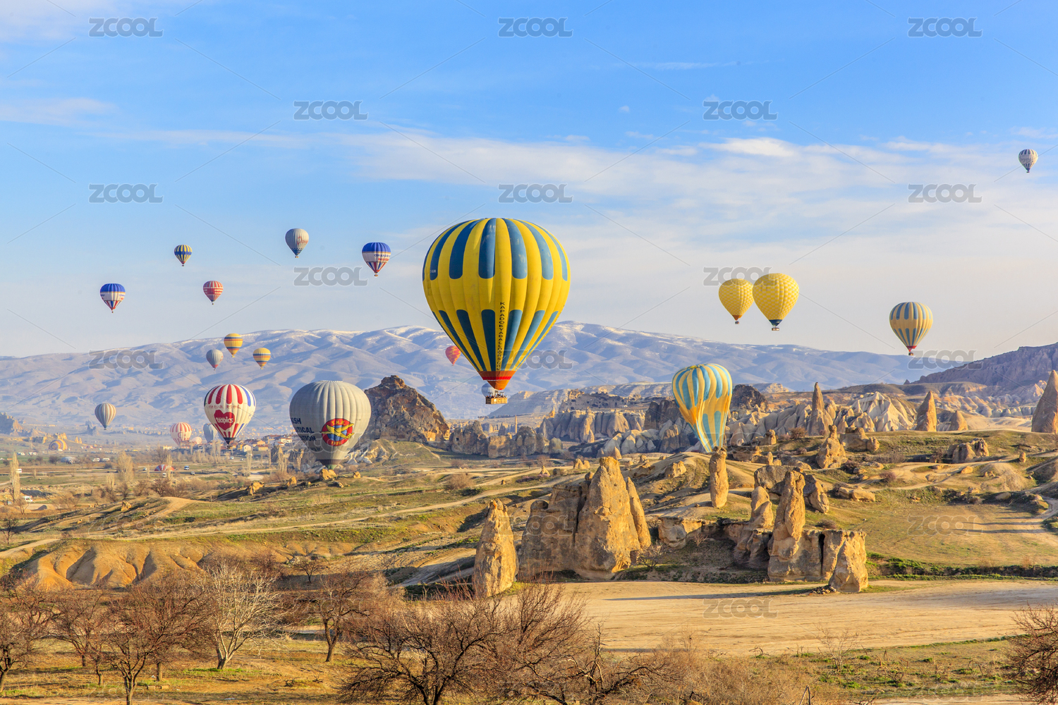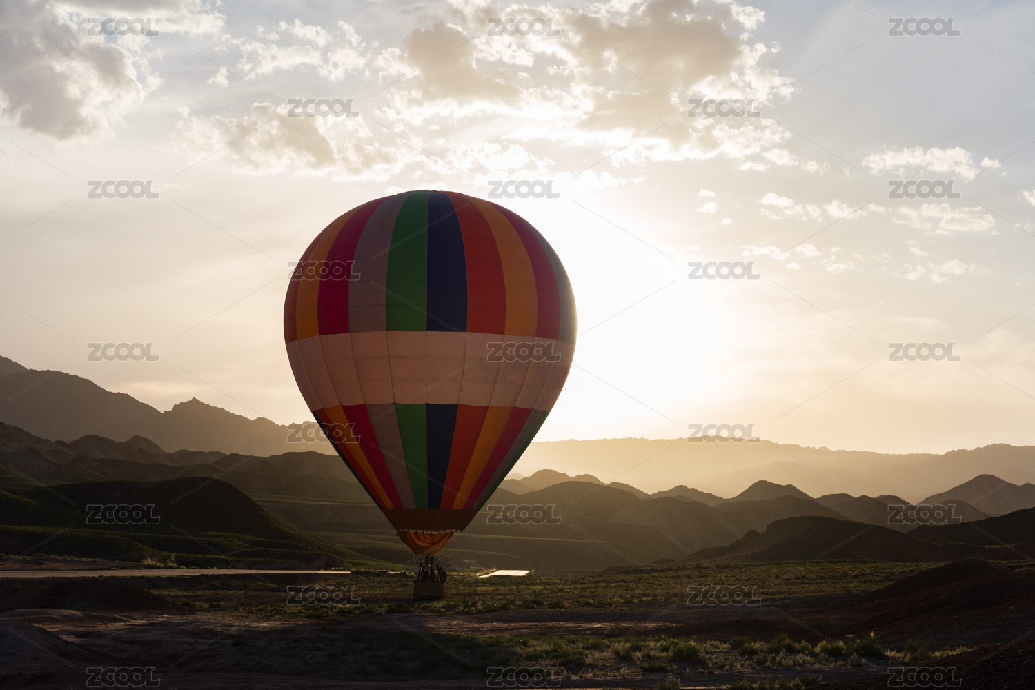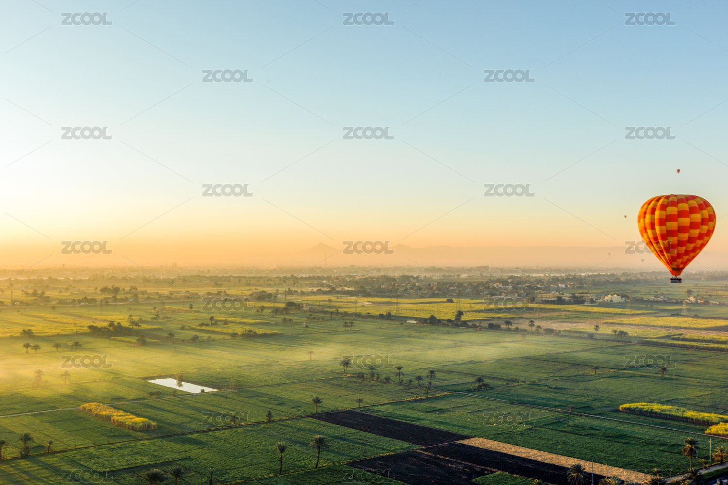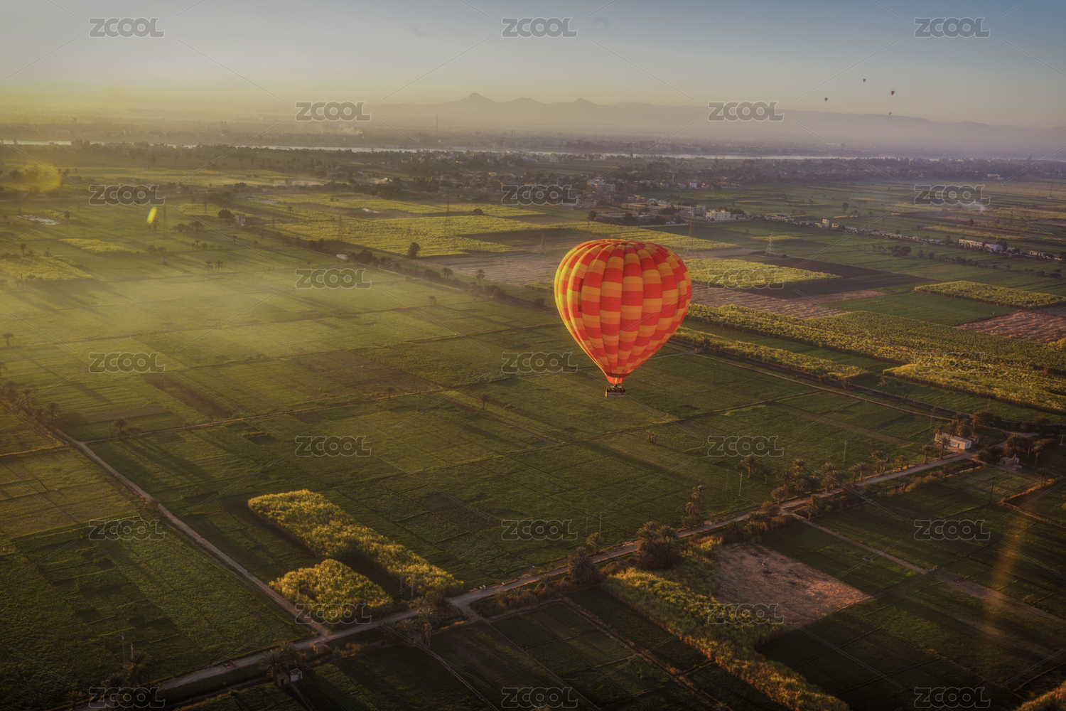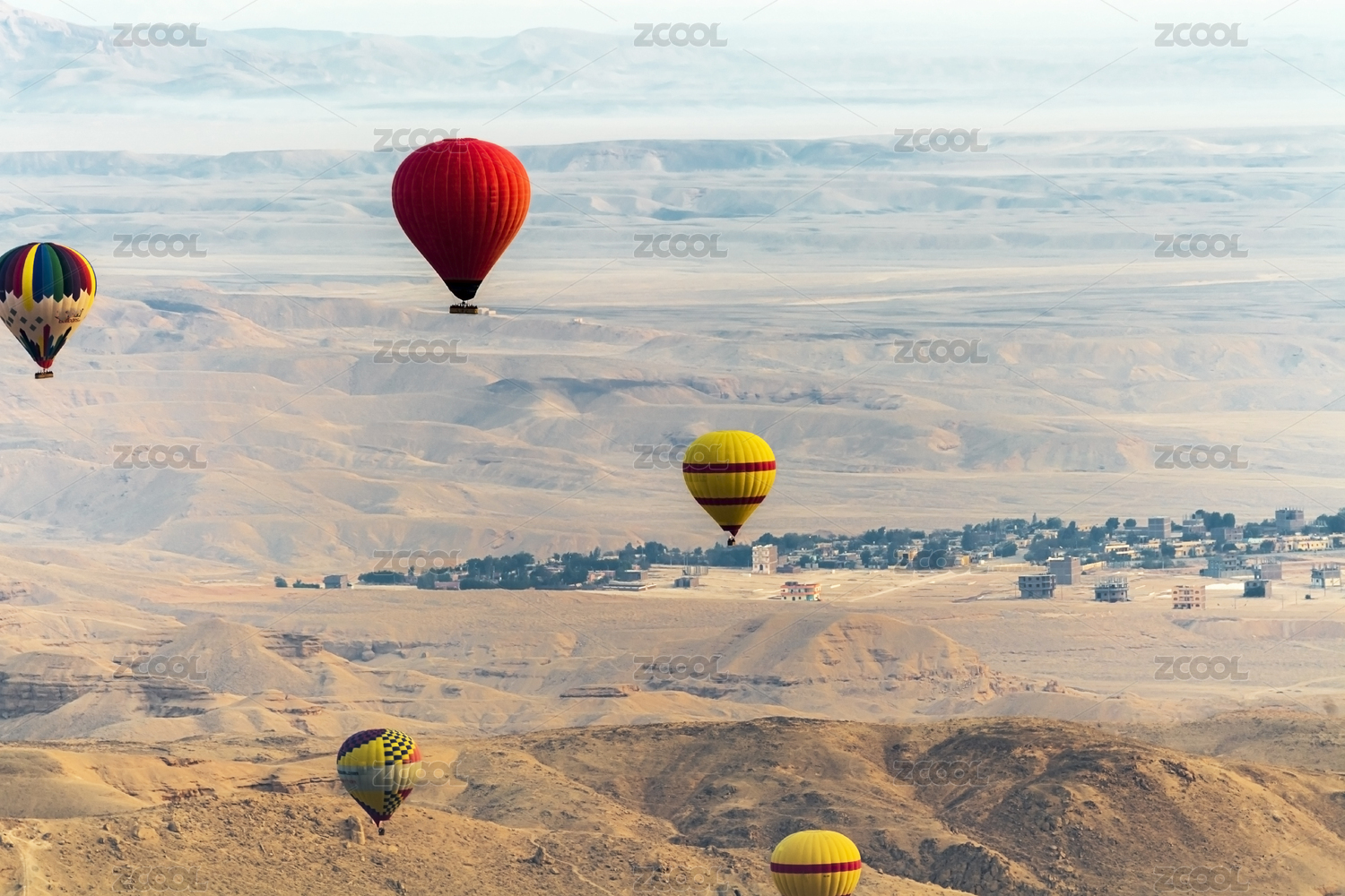 自由翱翔在非洲埃及沙漠大地上五彩斑斕的熱氣球