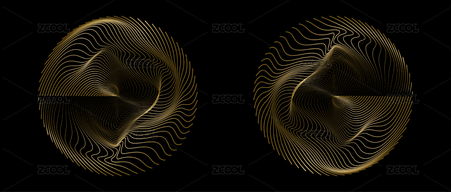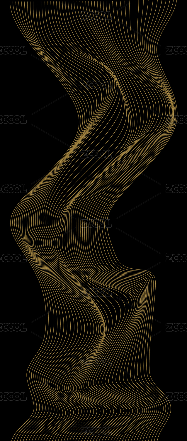 金色線條波浪山水曲線抽象意境裝飾畫(huà)