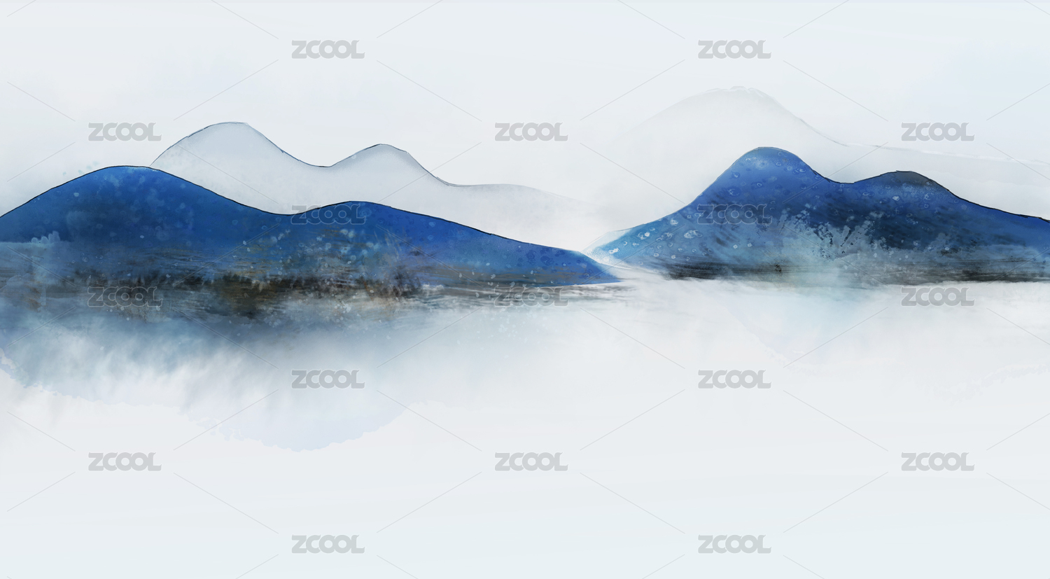 意境藍(lán)色山水裝飾畫(huà)