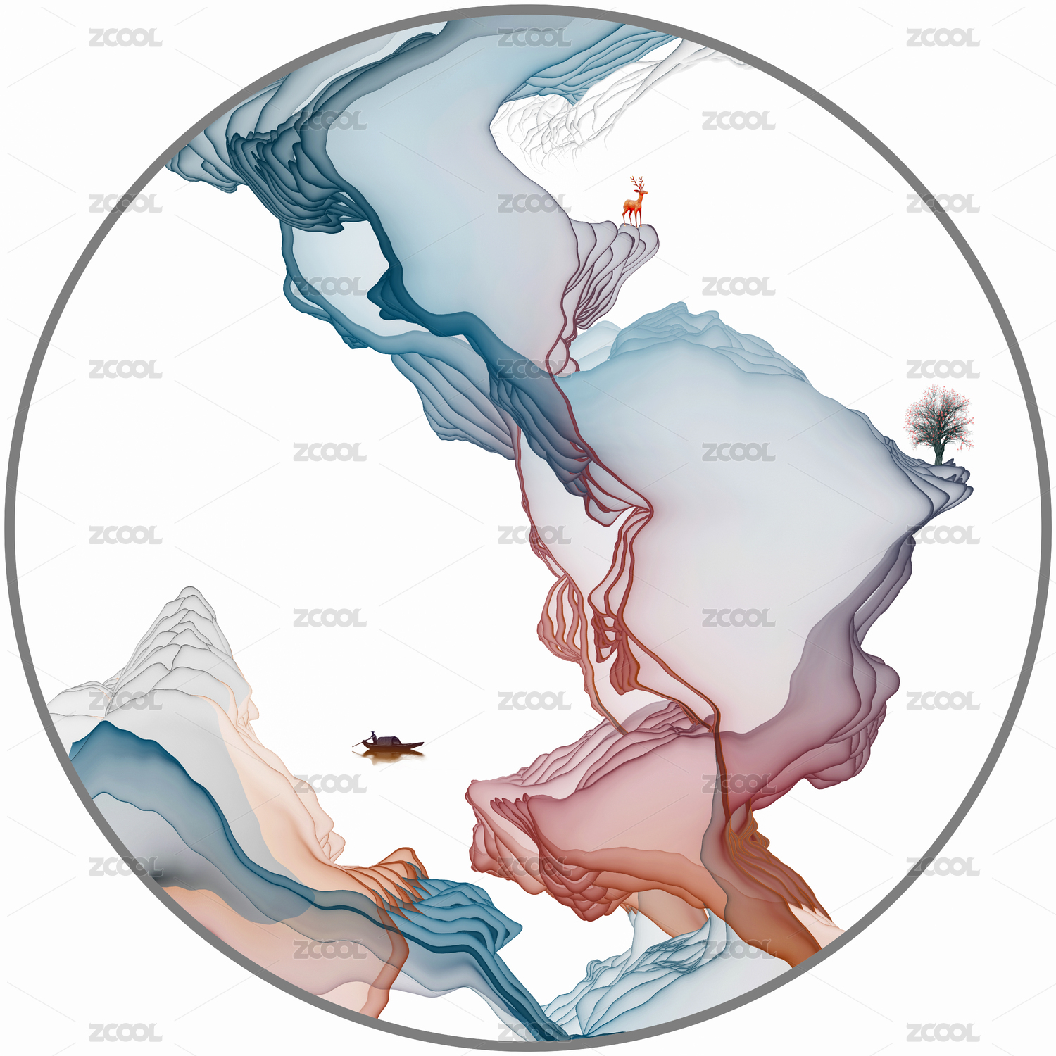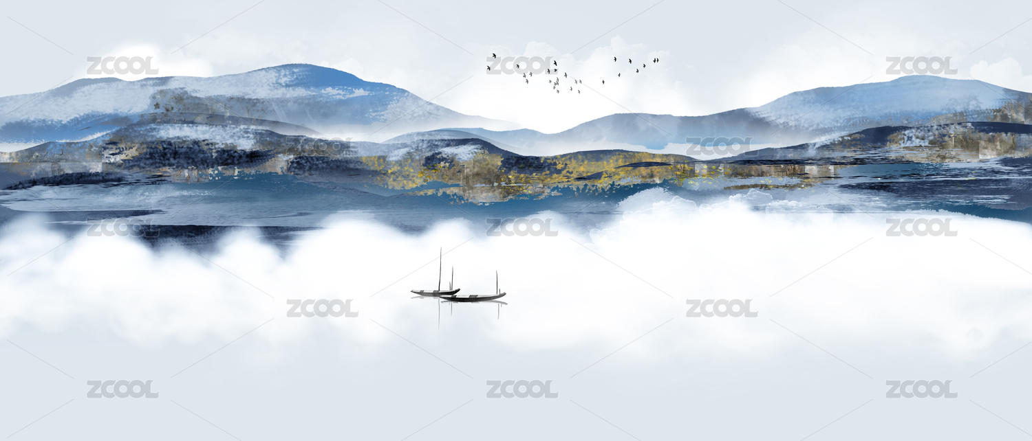 藍(lán)色意境山水裝飾畫(huà)