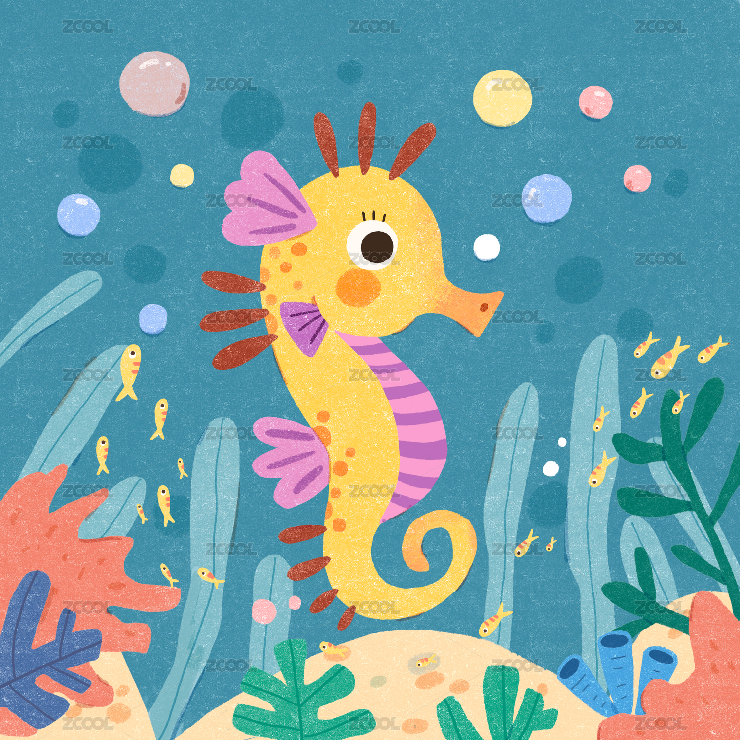 海底世界中的可愛海馬