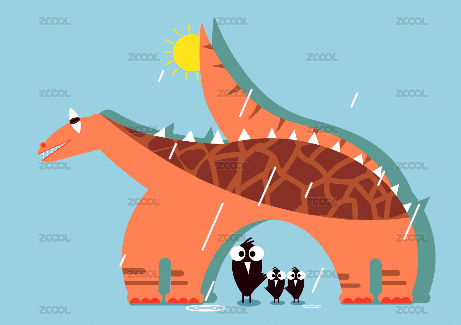 小鳥(niǎo)在恐龍身下躲雨印花圖案