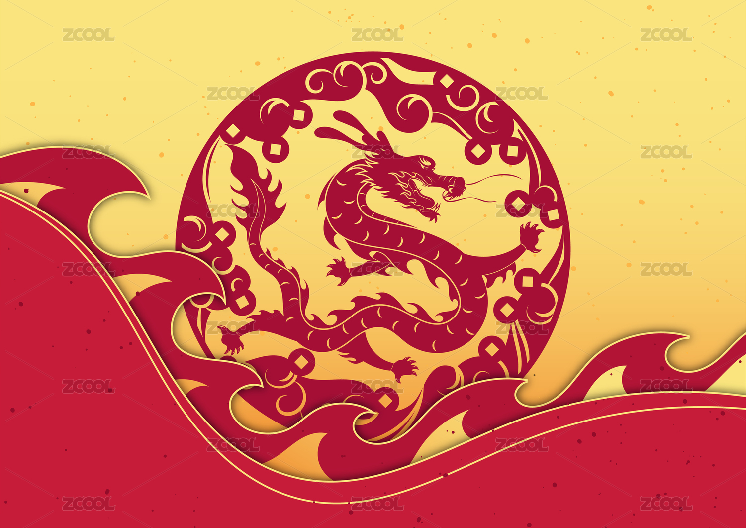 紅色龍身與龍剪紙