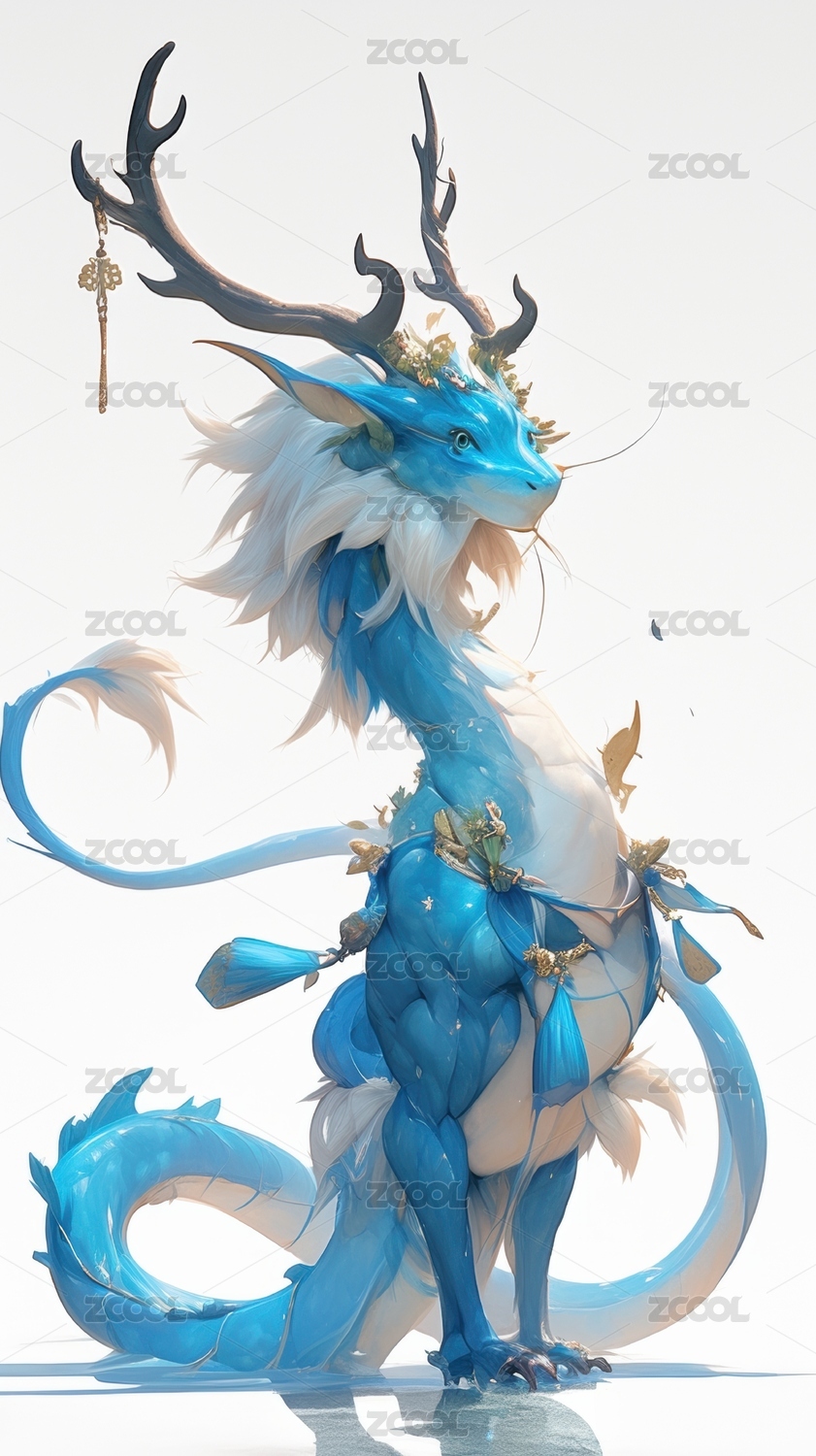 藍(lán)色幻想生物鹿角與龍身的融合