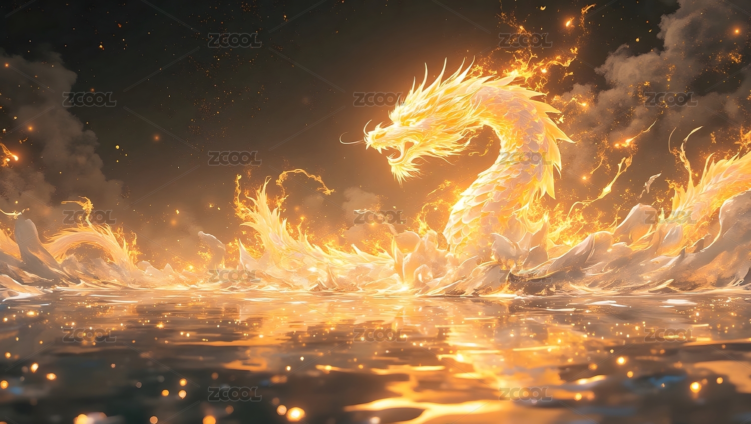 火焰巨龍翱翔夜空