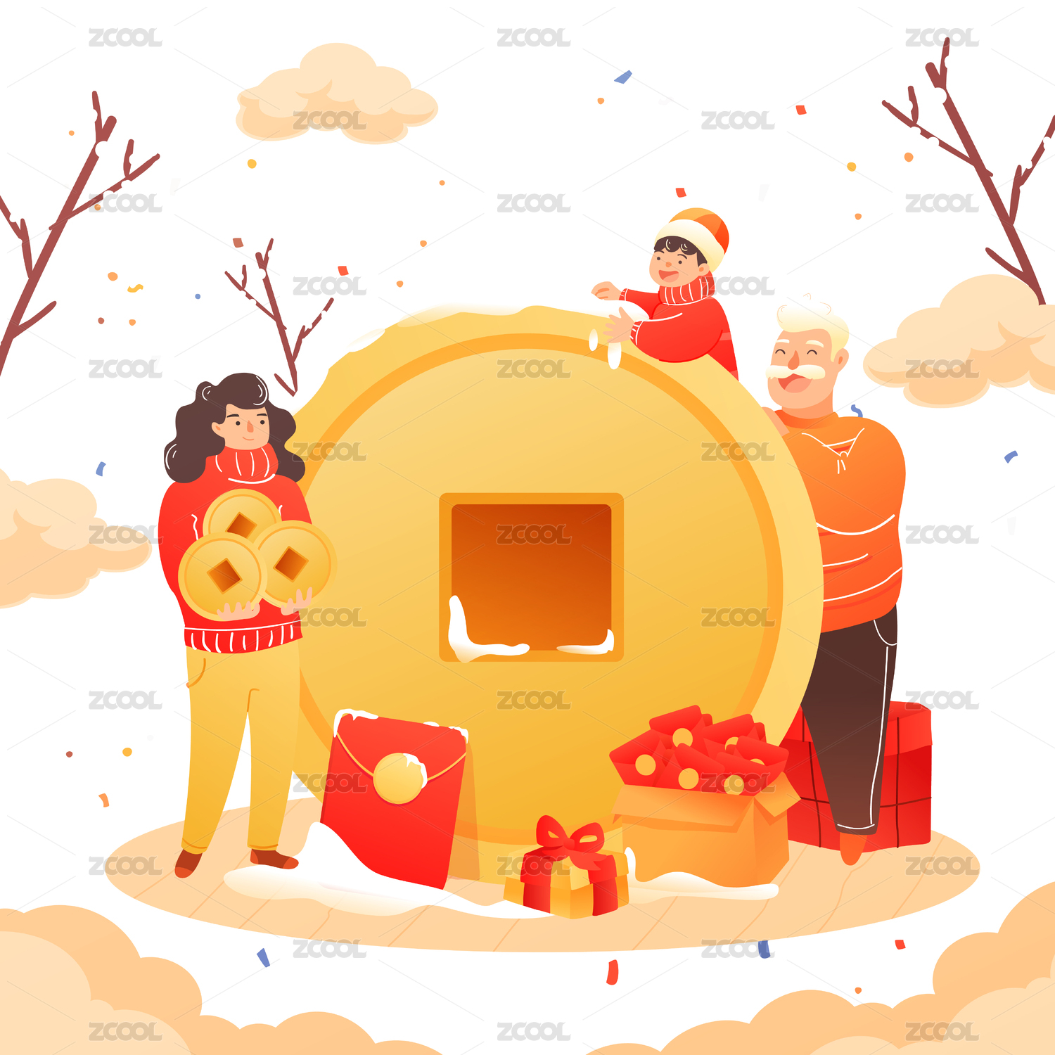 2020年新年紅包金融活動喜慶矢量背景插畫