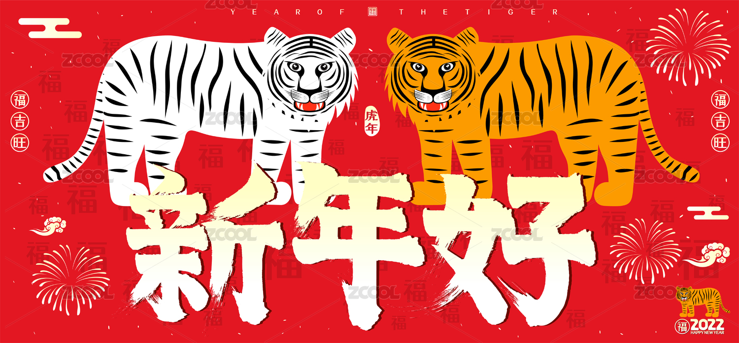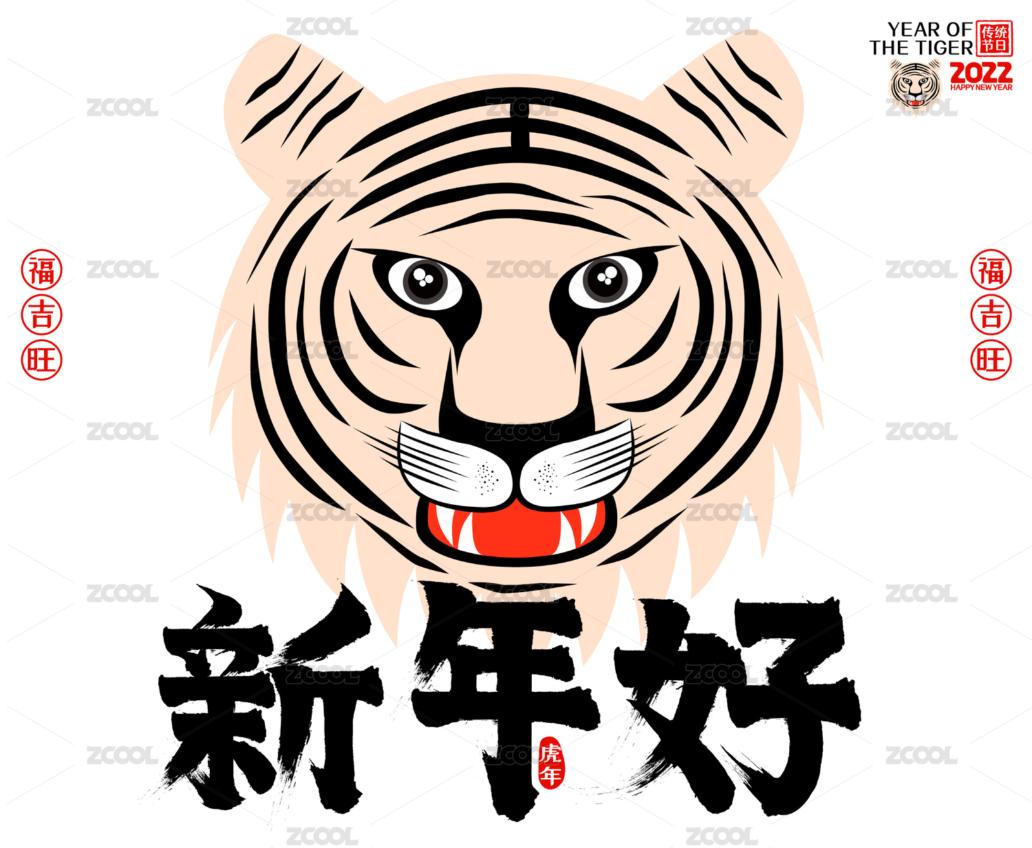 虎年2022新年好簡約虎頭圖案矢量毛筆字