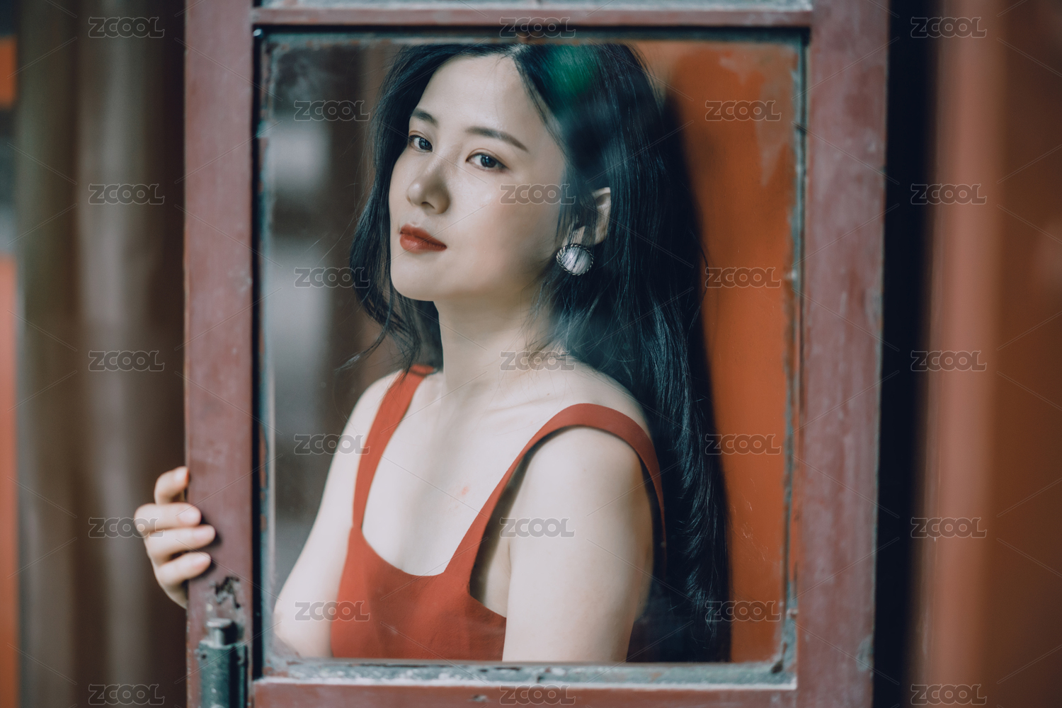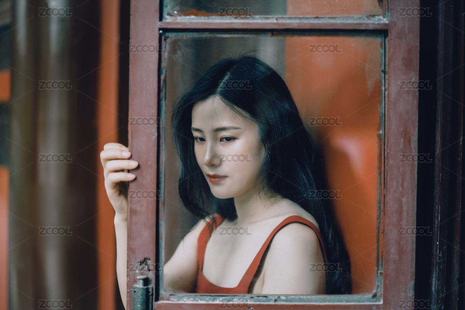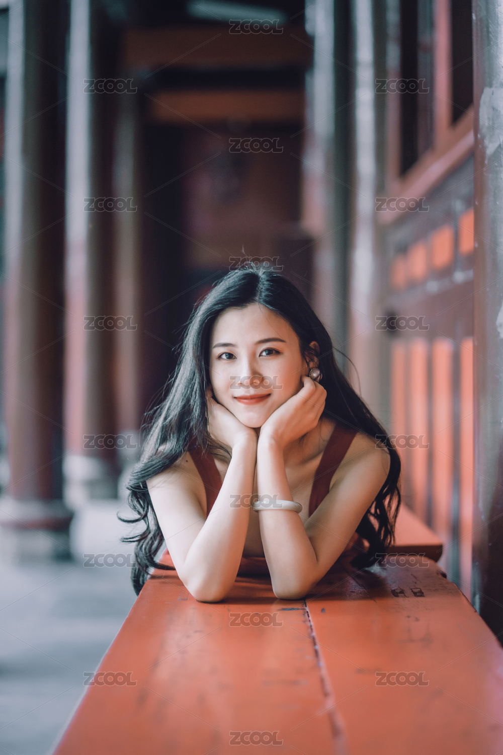 室內(nèi)甜美的長(zhǎng)頭發(fā)東方女人