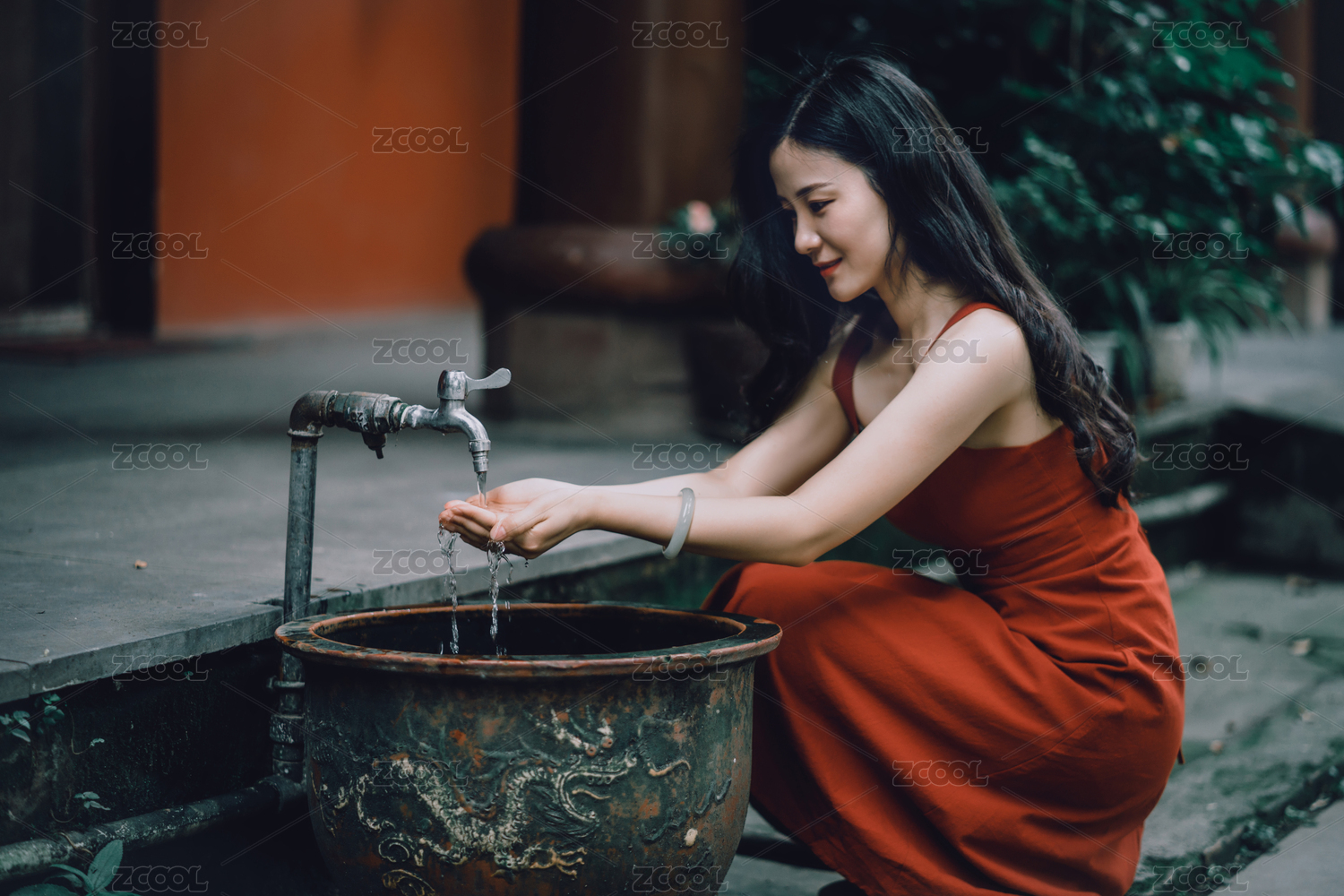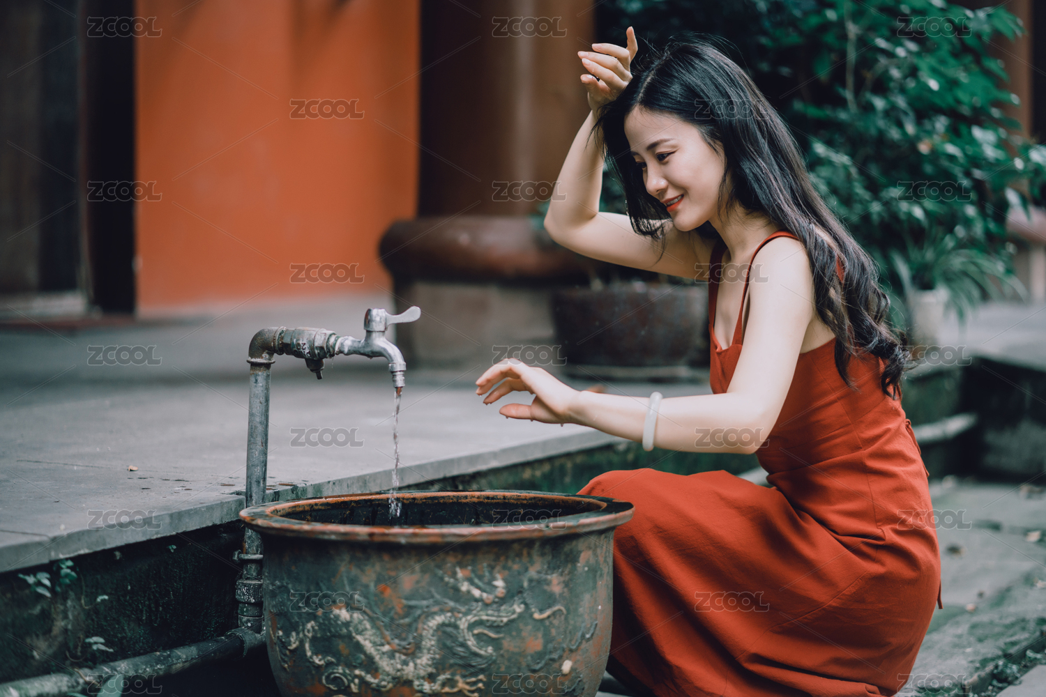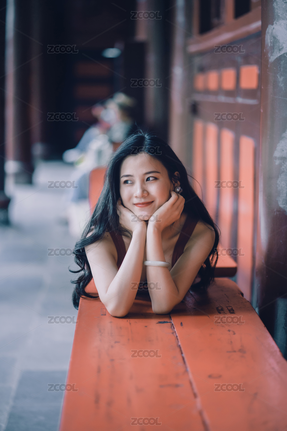 室內(nèi)甜美的長(zhǎng)頭發(fā)東方女人