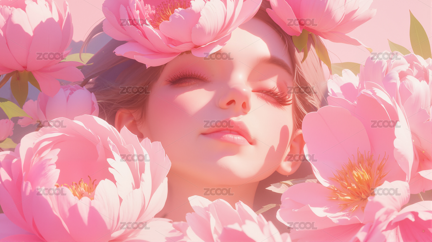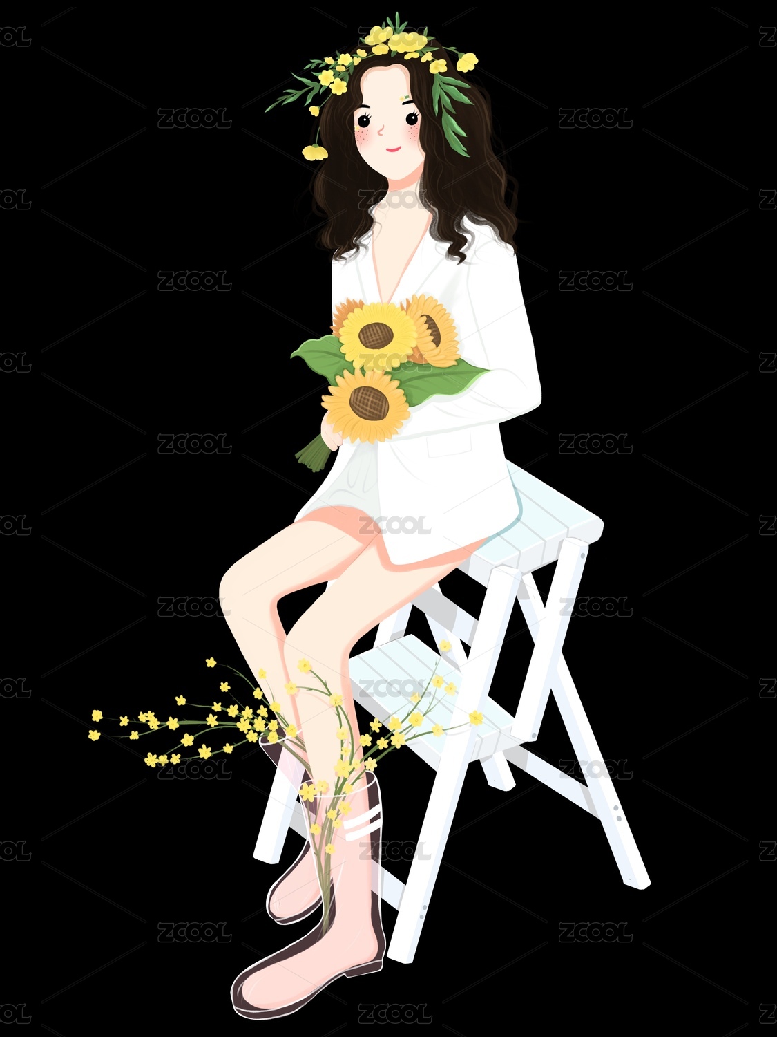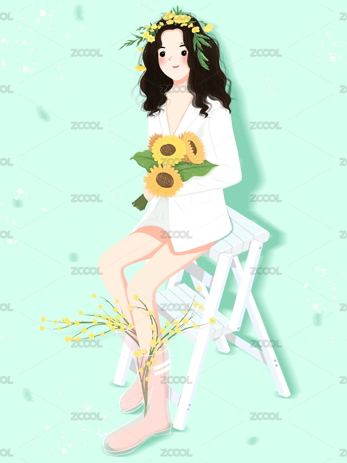 郁金香花朵蝴蝶結(jié)麻花辮溫柔少女插畫(huà)