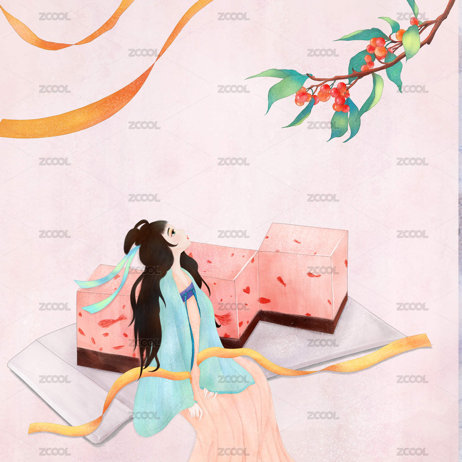 小清新甜美古風(fēng)漢服櫻桃蛋糕女孩正方形圖