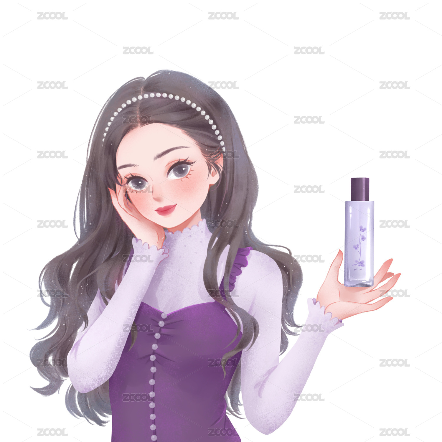 手拿護(hù)膚品的精致甜美的長(zhǎng)發(fā)女孩