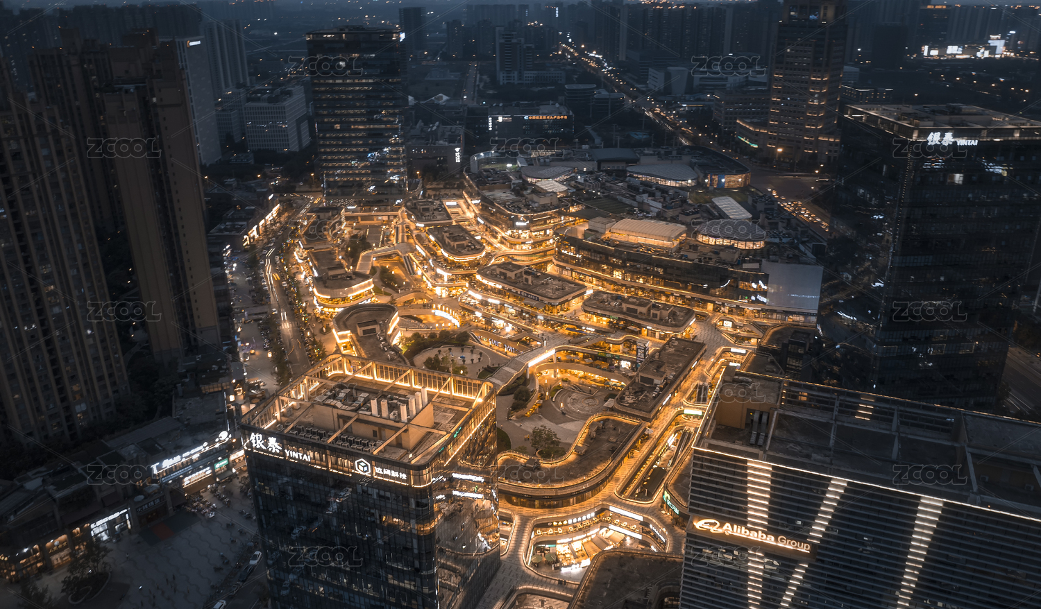 成都高新區(qū)銀泰城航拍夜景