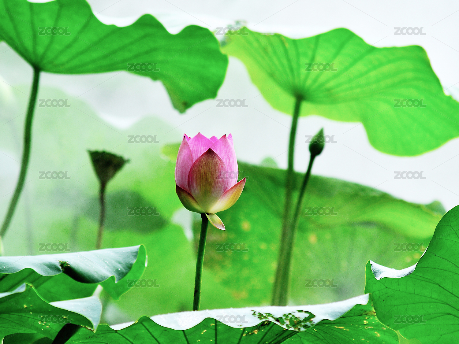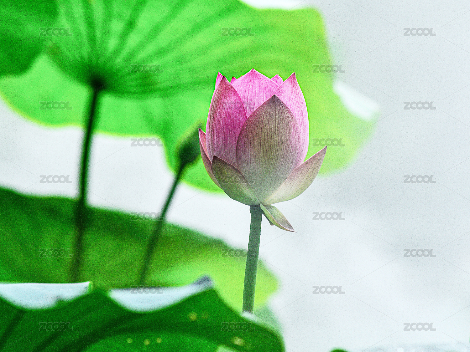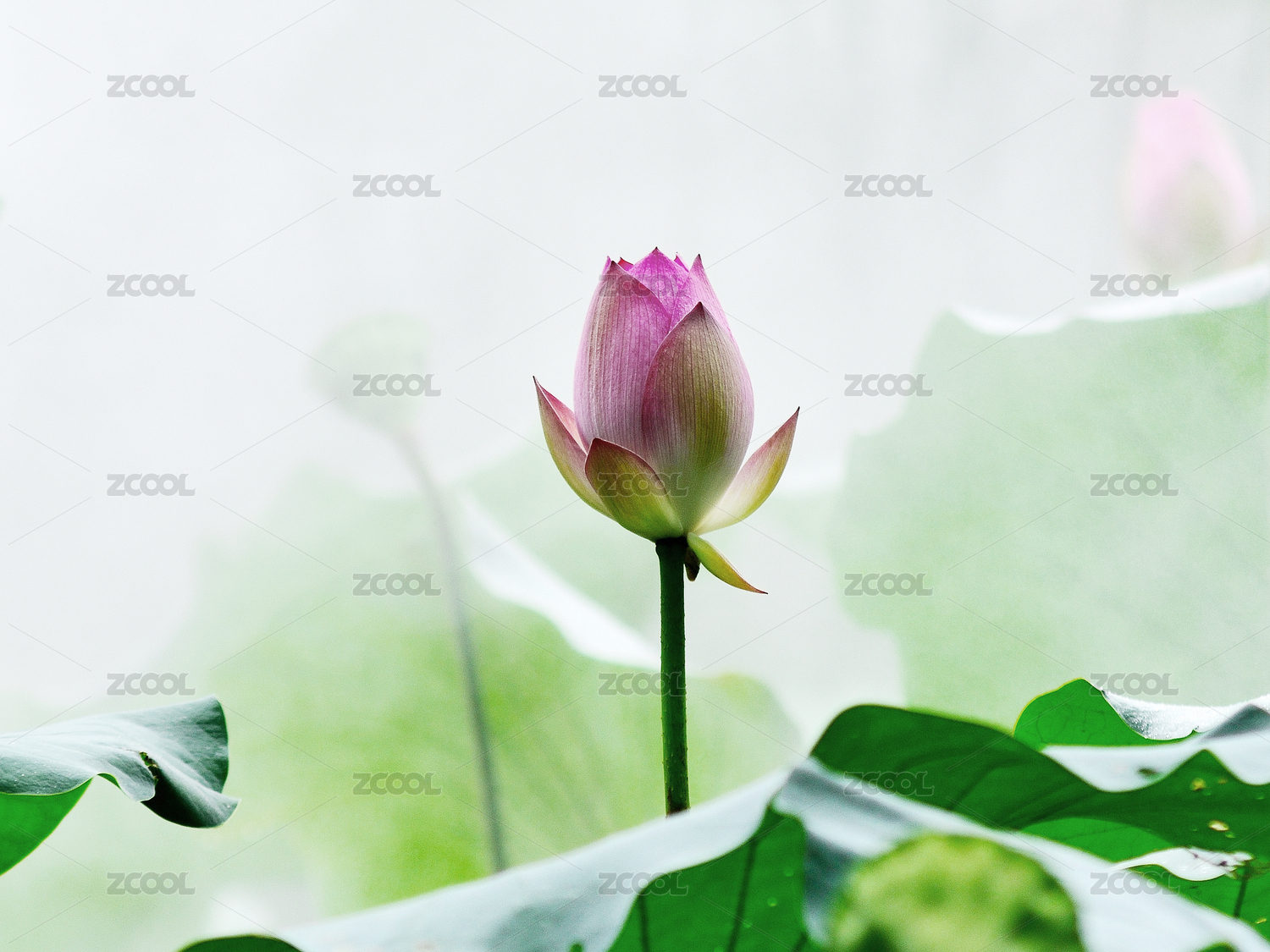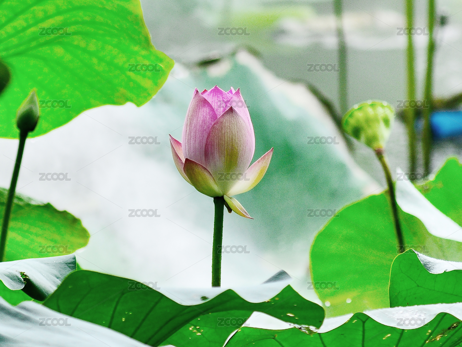 水霧蒙蒙中含苞待放的粉色荷花花苞