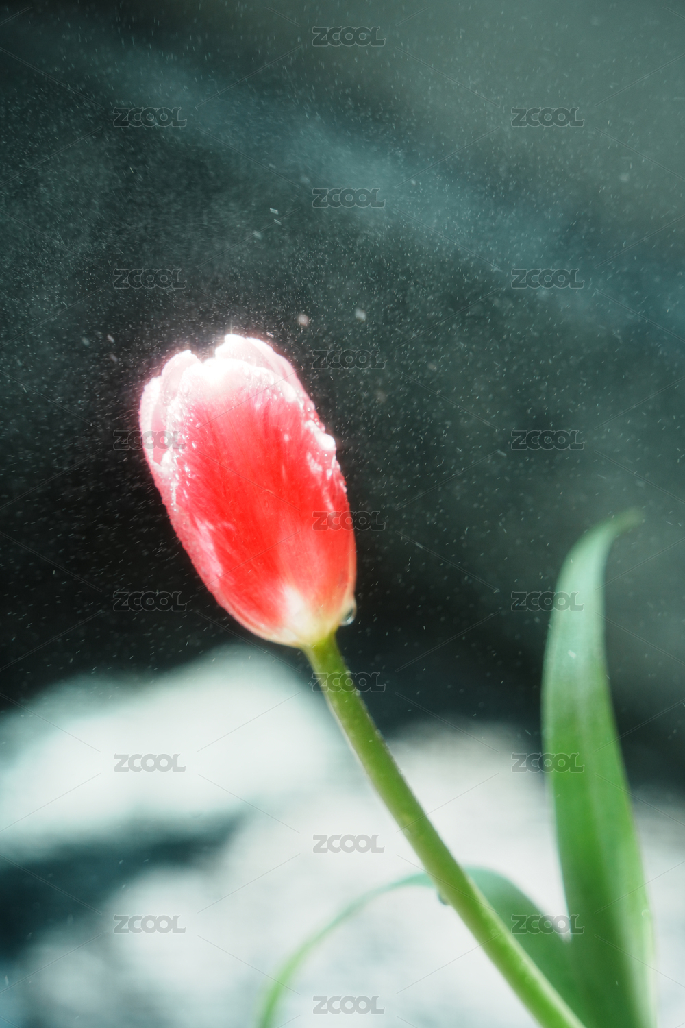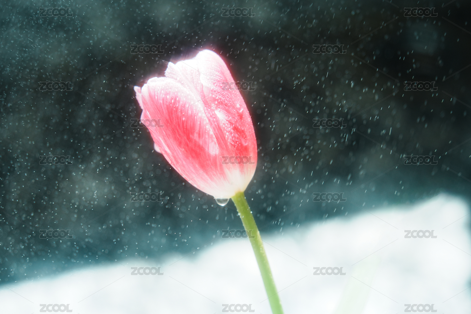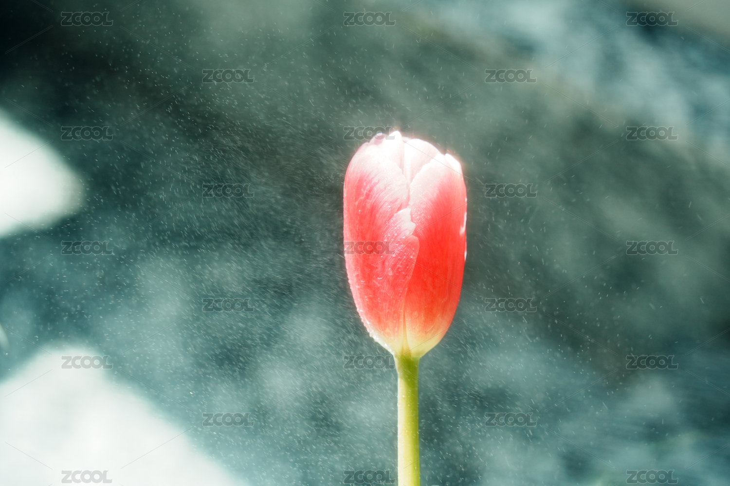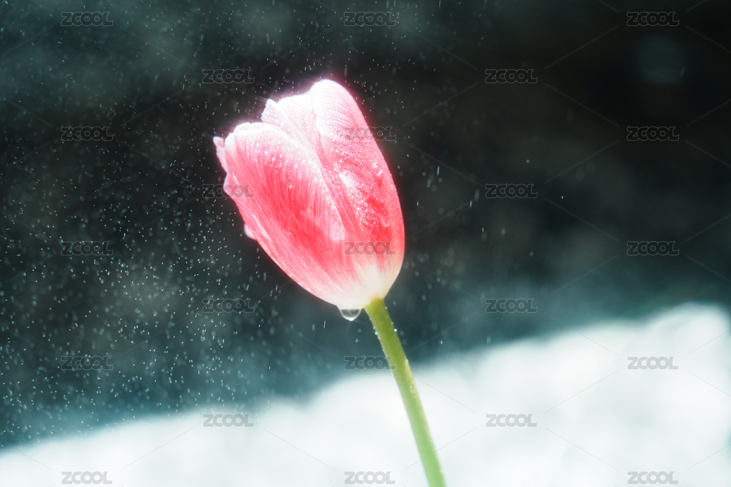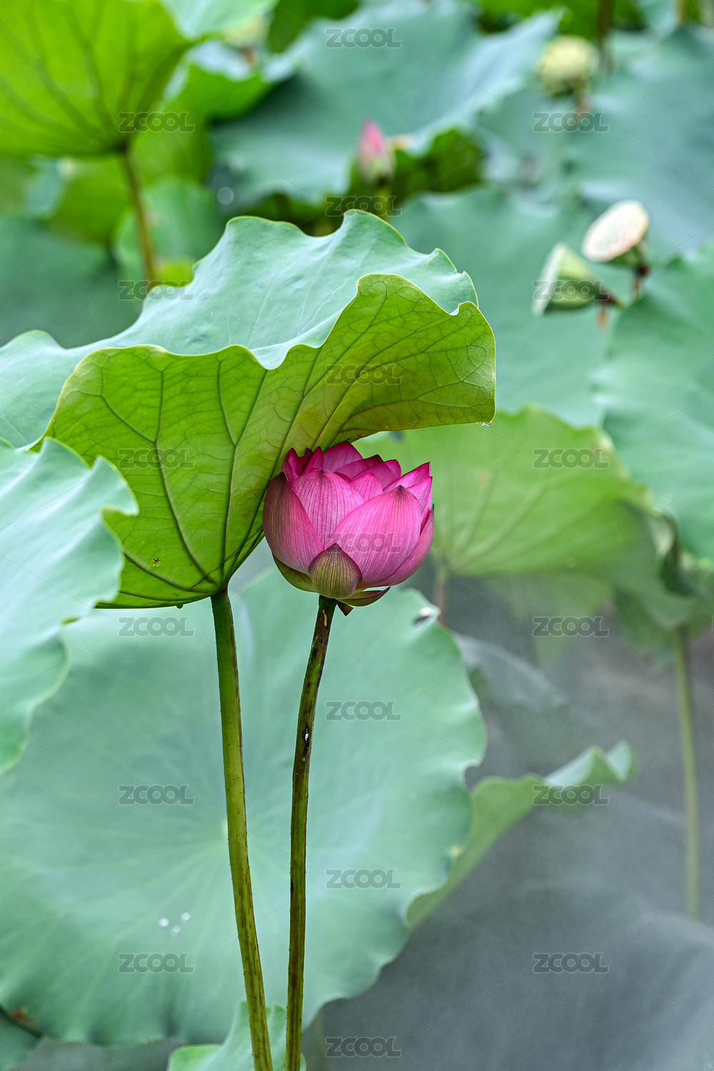 水霧蒙蒙中含苞待放的粉色荷花花苞