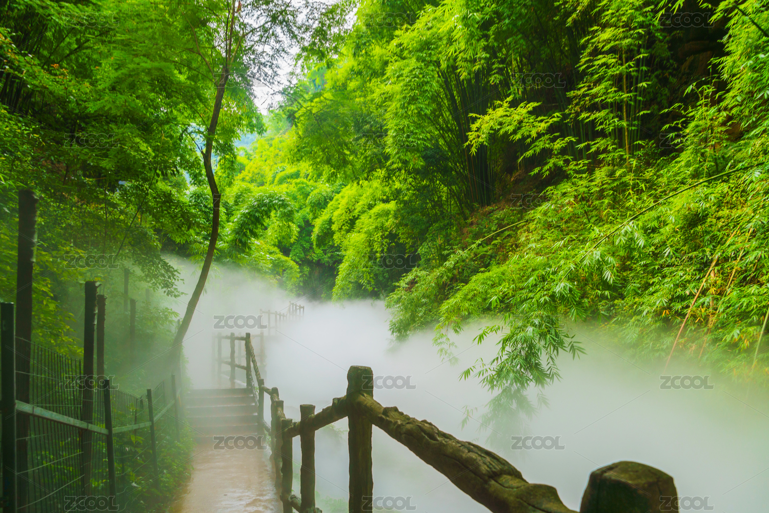 四川邛崍平樂川西竹海夏季竹林和水霧