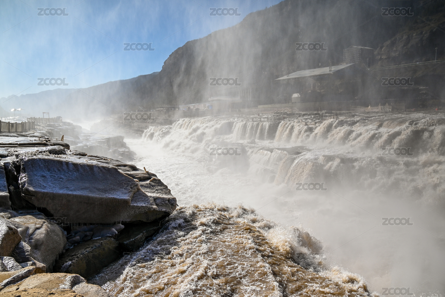 黃河壺口瀑布 秋冬季節(jié)的巨大水霧