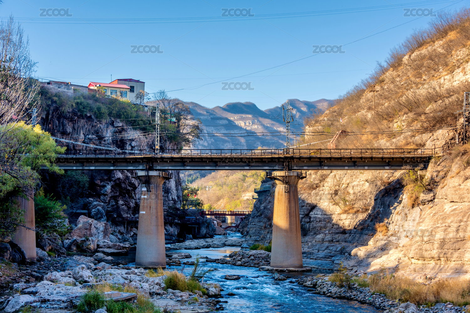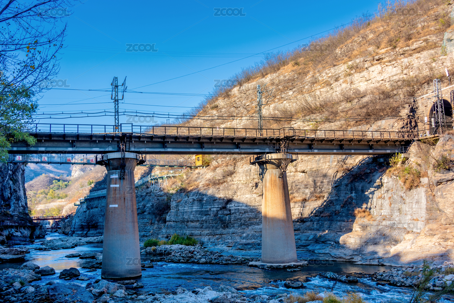 中國山西陽泉平定娘子關(guān)綿河鐵道橋風(fēng)光