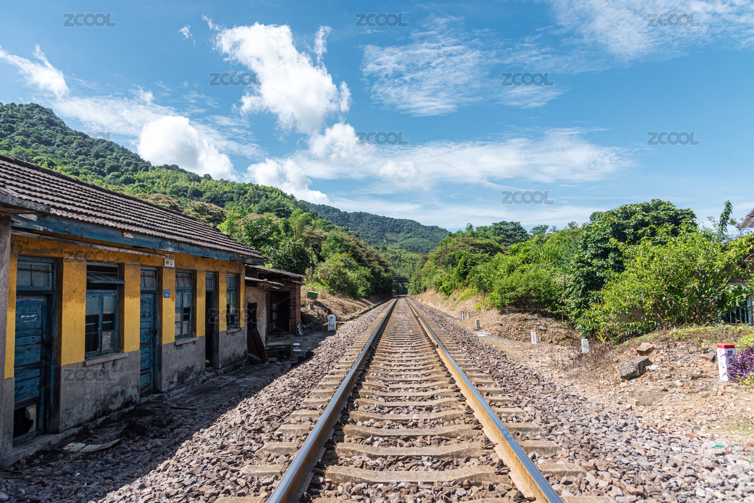 藍(lán)天白云下的鐵路軌道