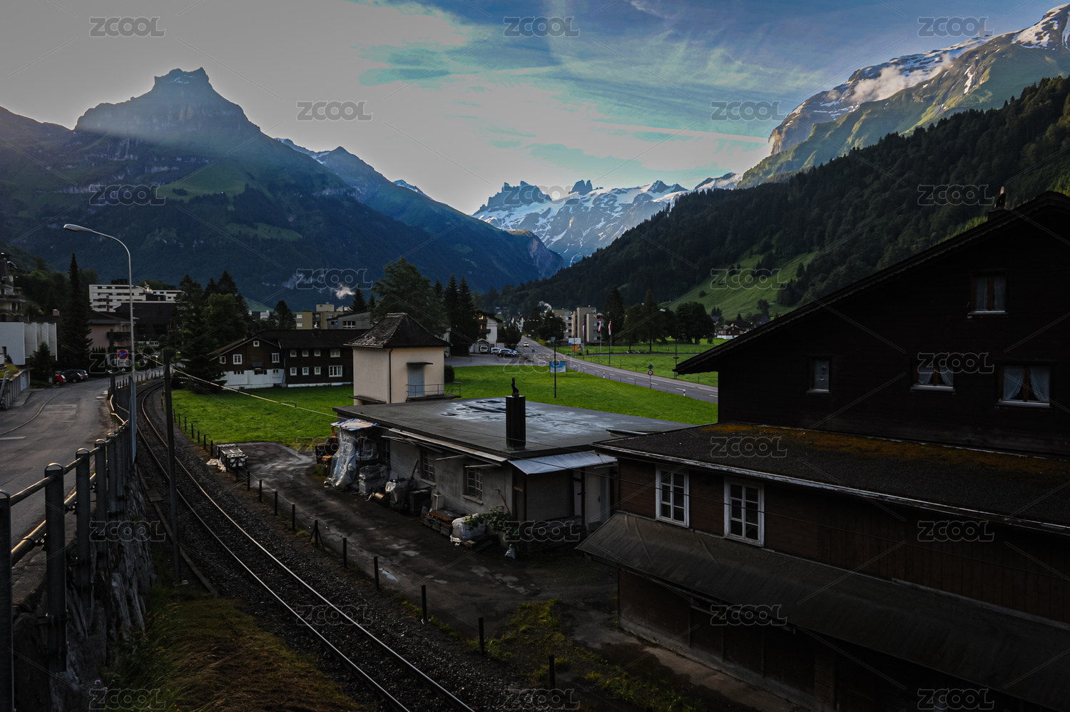 瑞士英格堡鐵道與雪山輝映