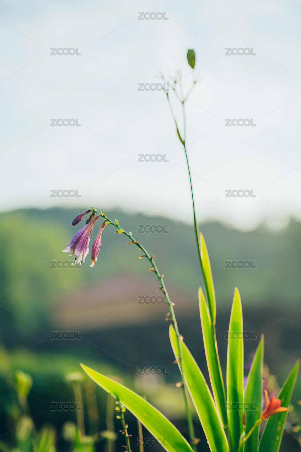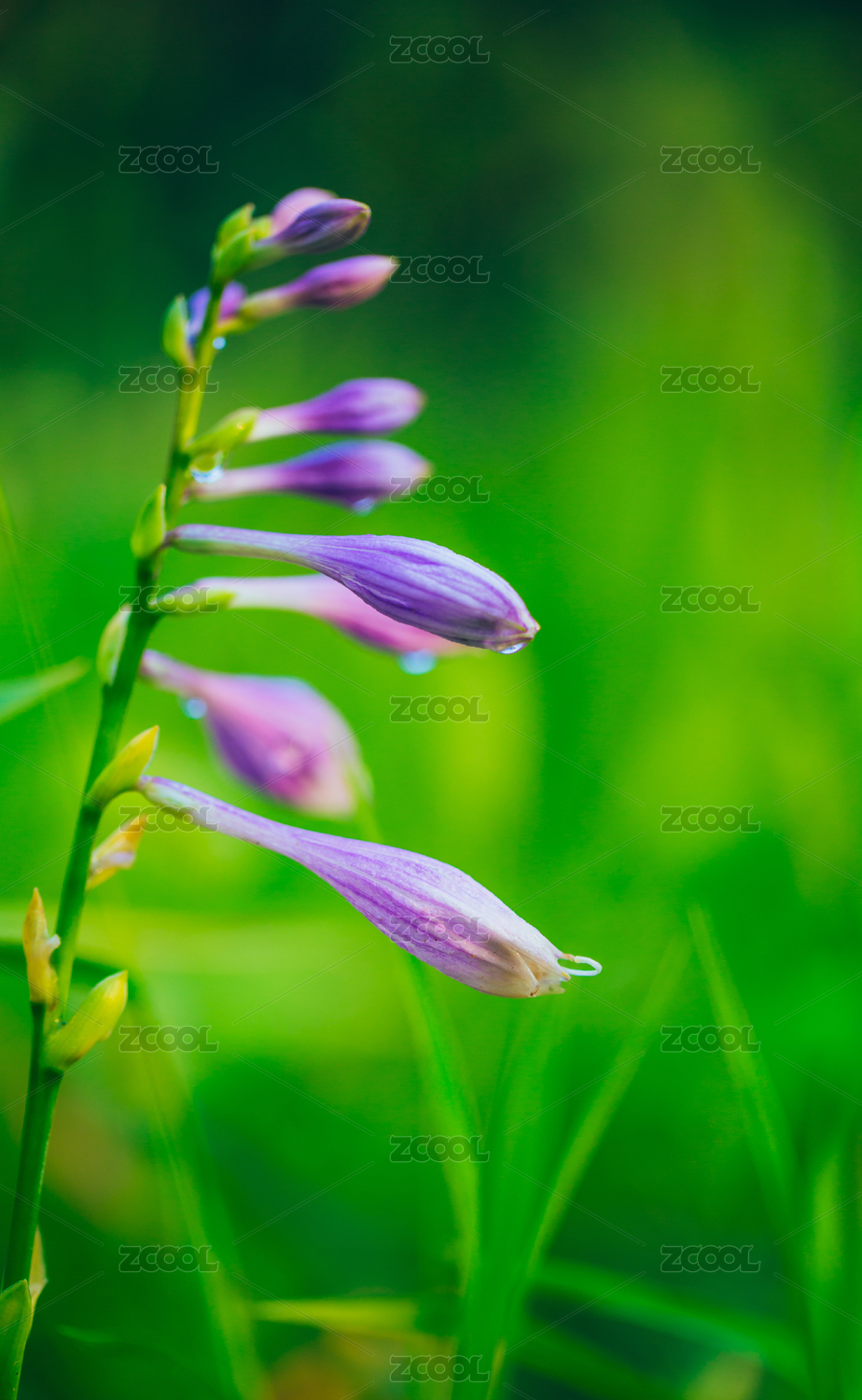 戶外雨后盛開的紫色東北玉簪花和水珠