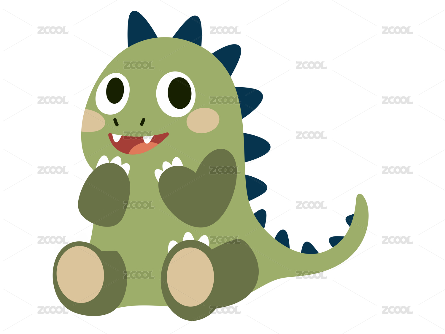 綠色可愛小恐龍微笑藍色插畫元素