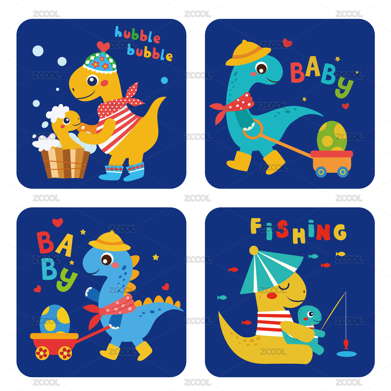 時尚卡通趣味小恐龍插畫矢量圖