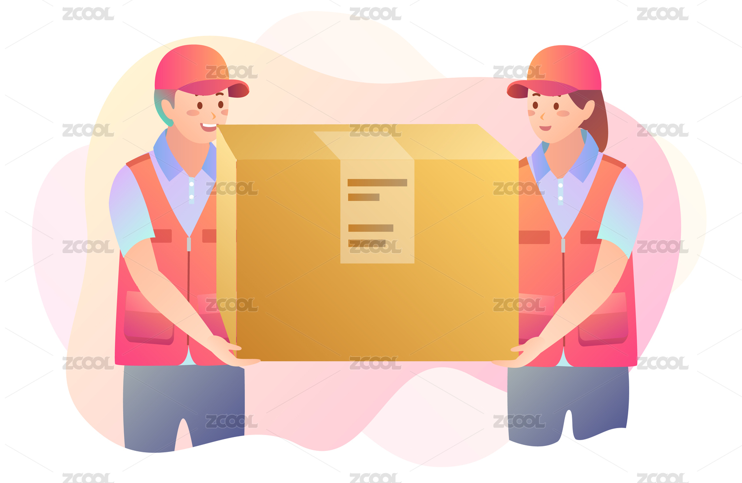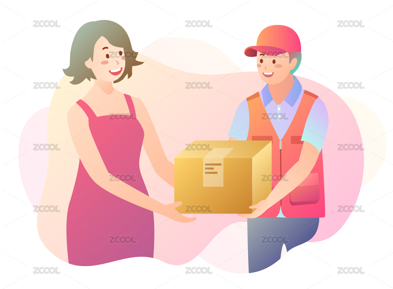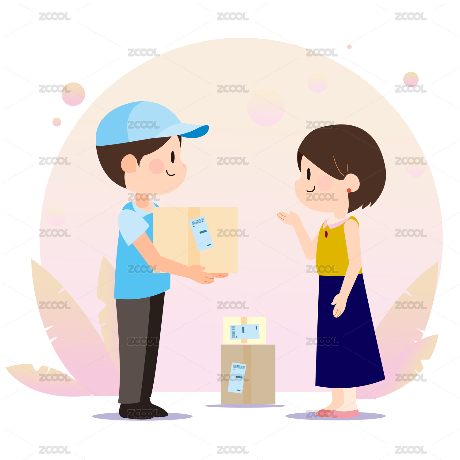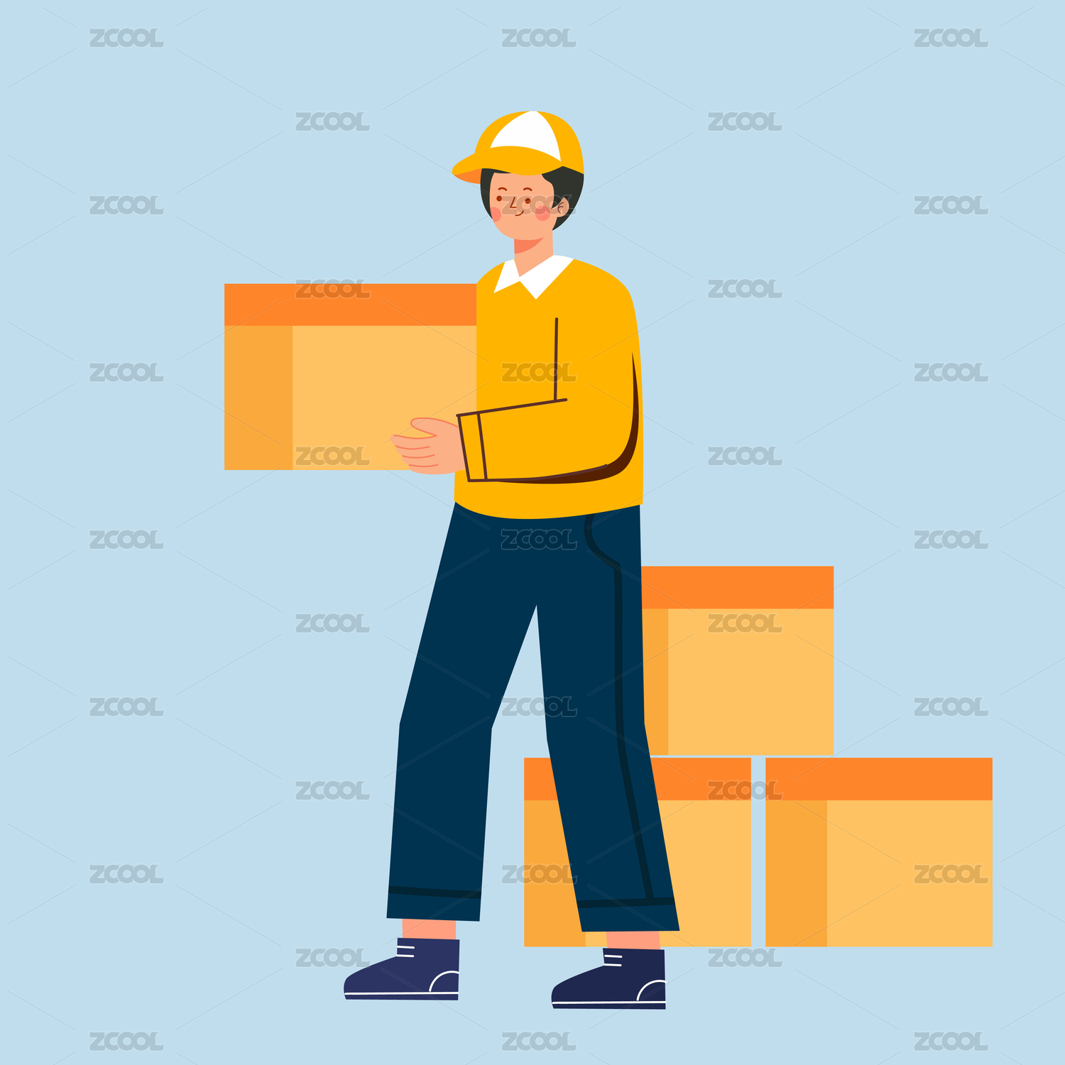 矢量電商網(wǎng)購快遞物流快遞小哥收件送快遞