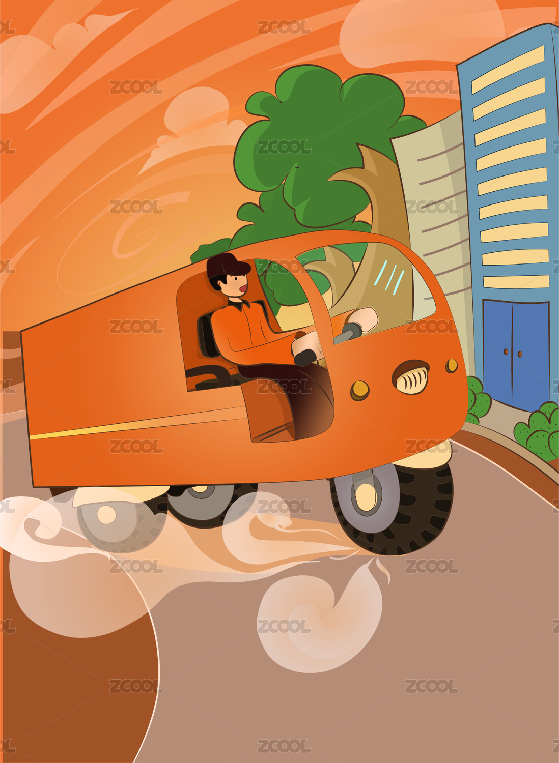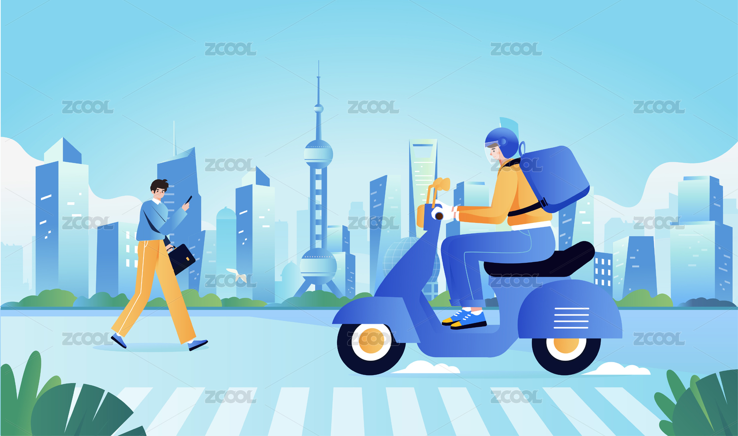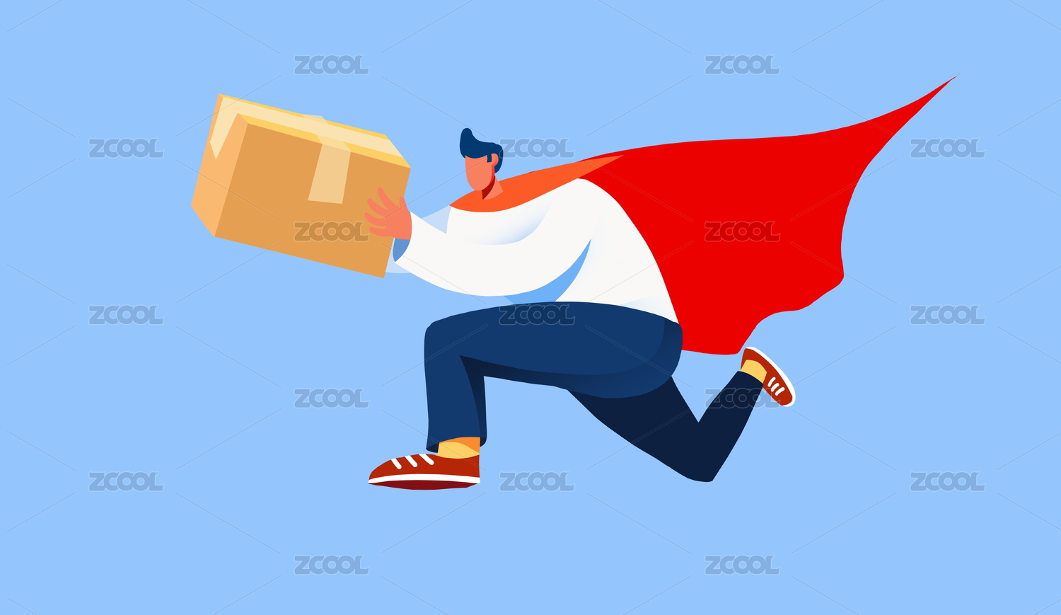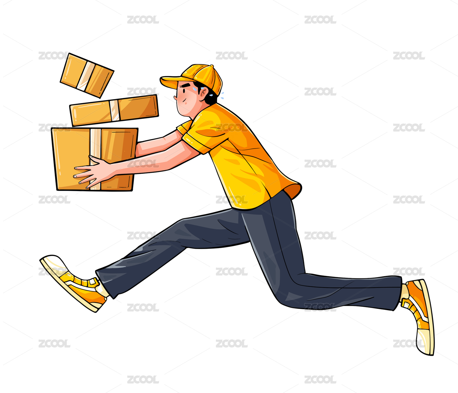 卡通手繪快遞員火箭推進(jìn)派送送快遞員插畫