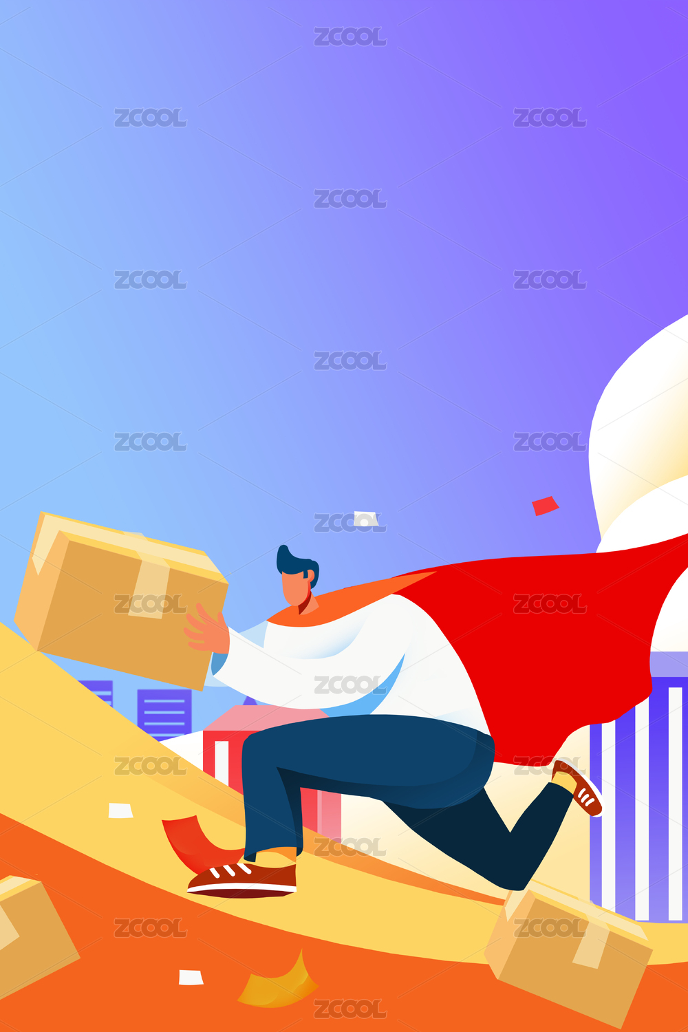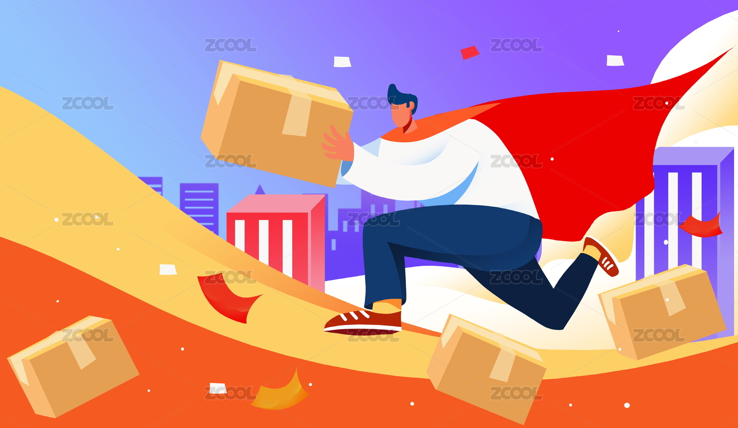 卡通手繪雙十一雙十二快遞員送快遞插畫