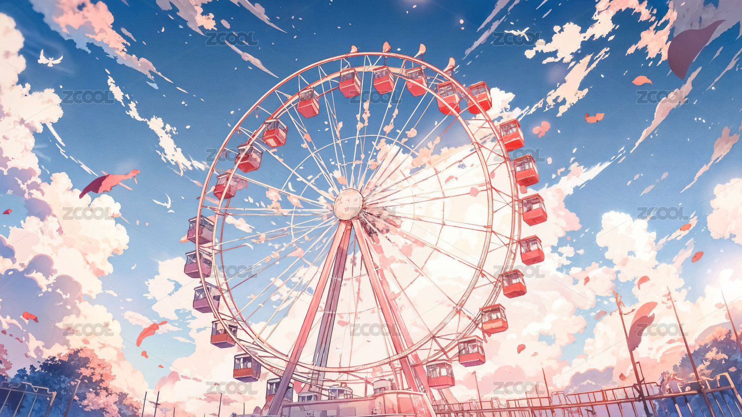 游樂園彩霞剪影矢量素材