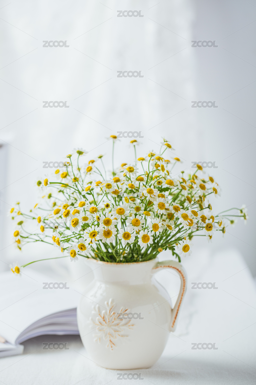 放在暗調(diào)背景中的洋甘菊插畫(huà)油畫(huà)風(fēng)靜物照