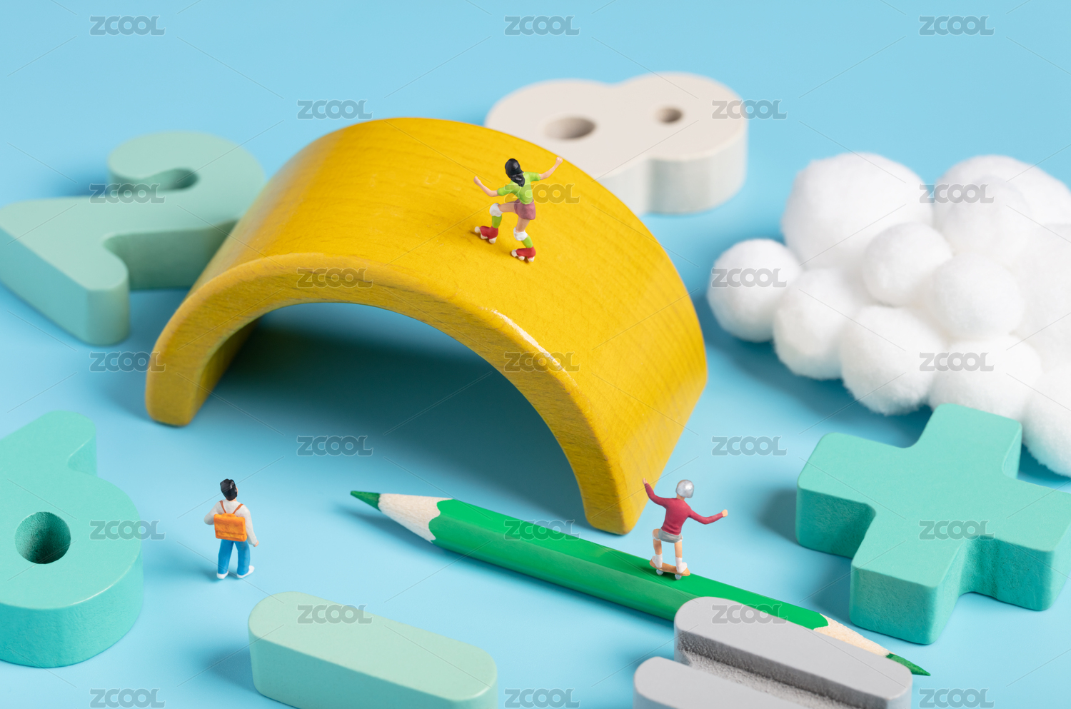 數(shù)字積木數(shù)學(xué)符號中小學(xué)生輪滑玩耍