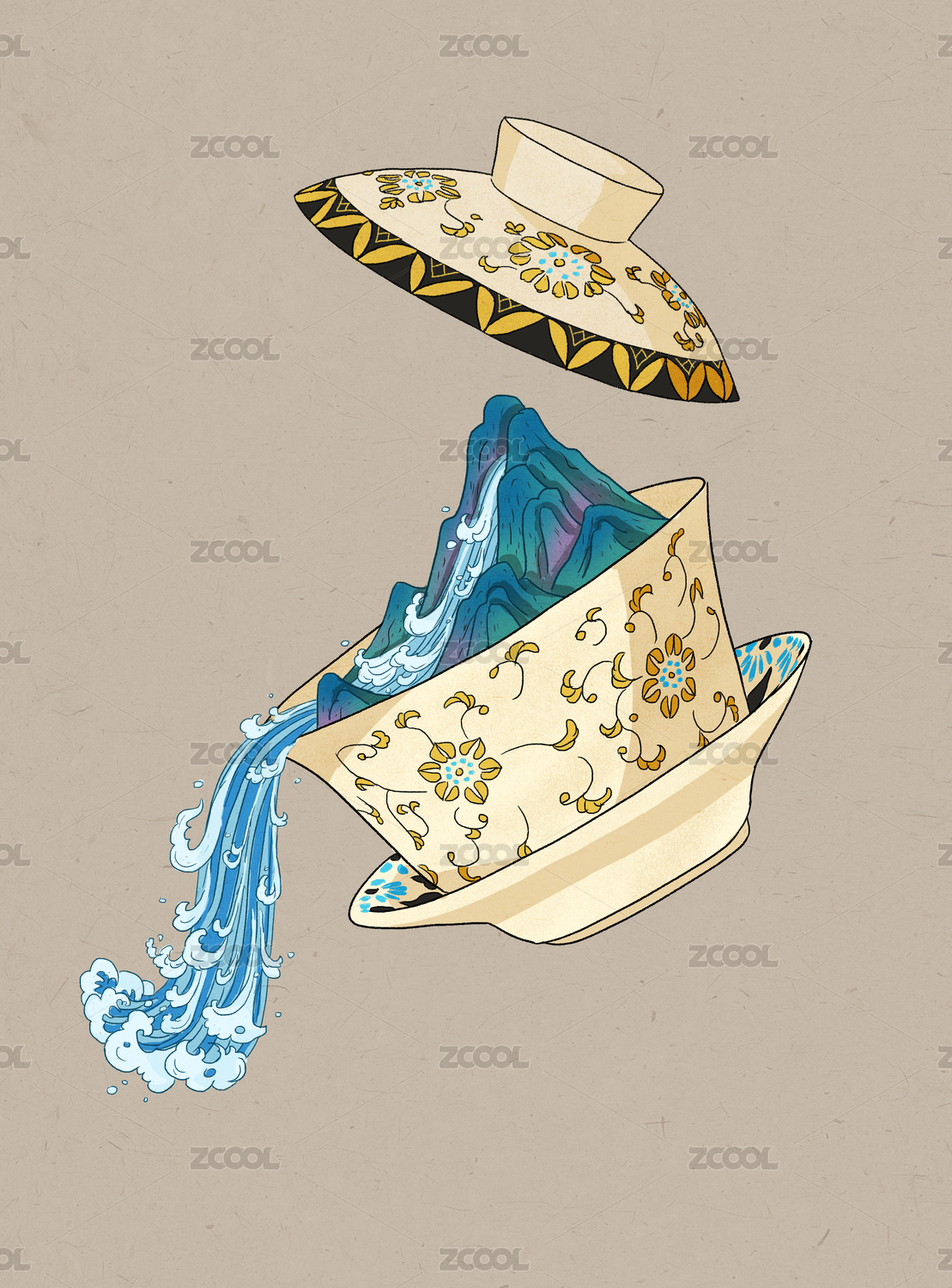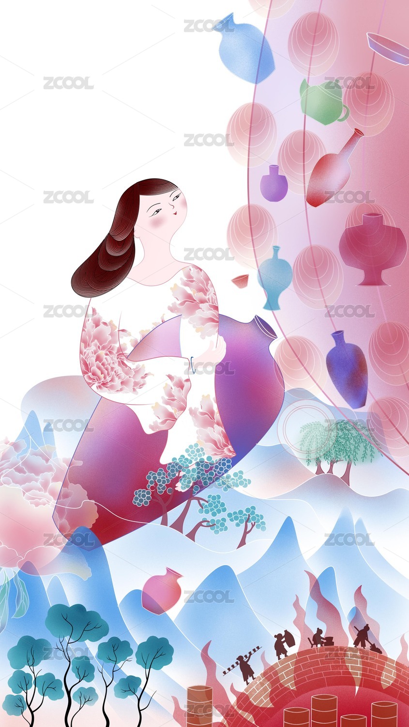 唯美中國(guó)風(fēng)瓷器主題插畫