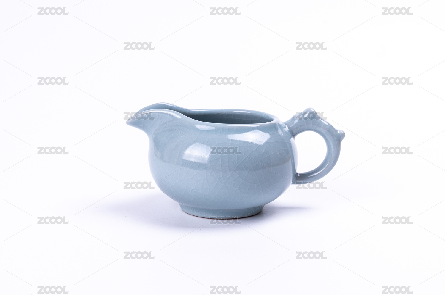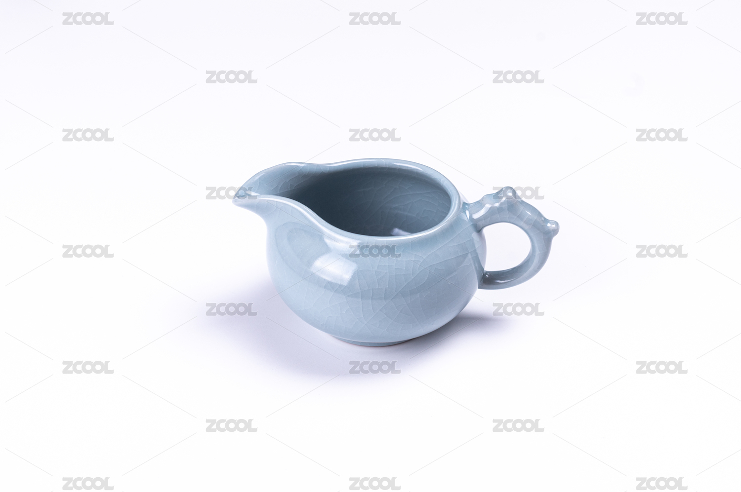 白色背景上的中國(guó)汝窯傳統(tǒng)瓷器茶具特寫