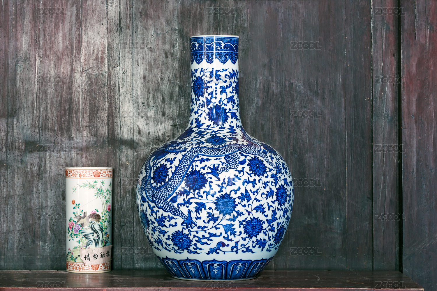 中國(guó)安徽省黟縣盧村木雕樓老屋內(nèi)的瓷器擺件