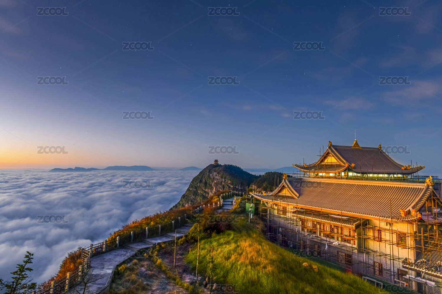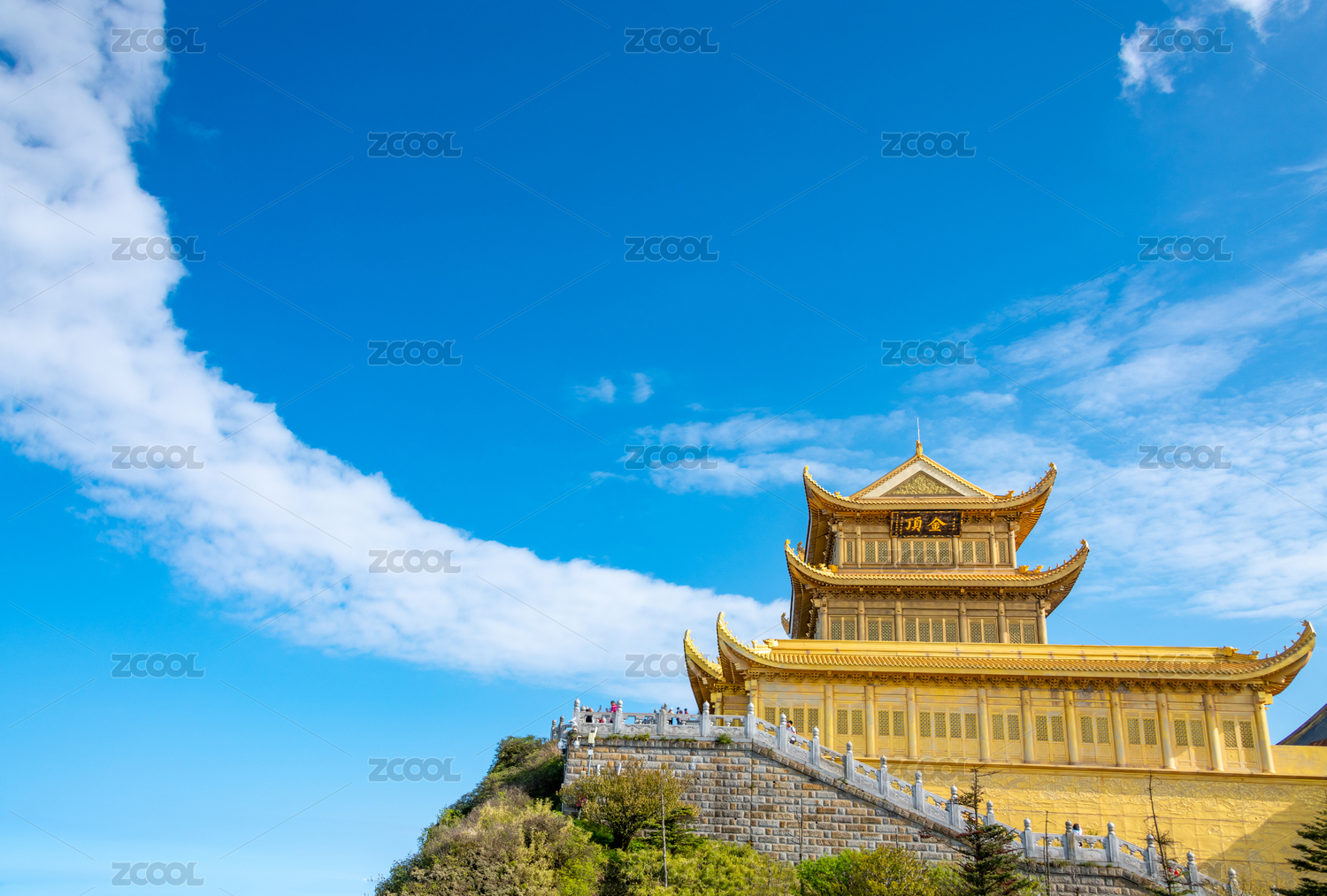 中國四川省峨眉山金頂?shù)膹R宇建筑