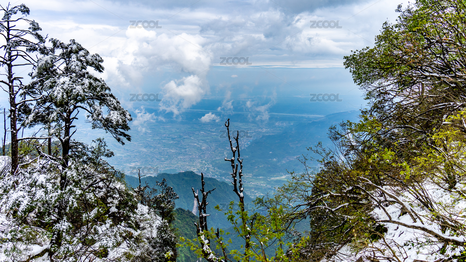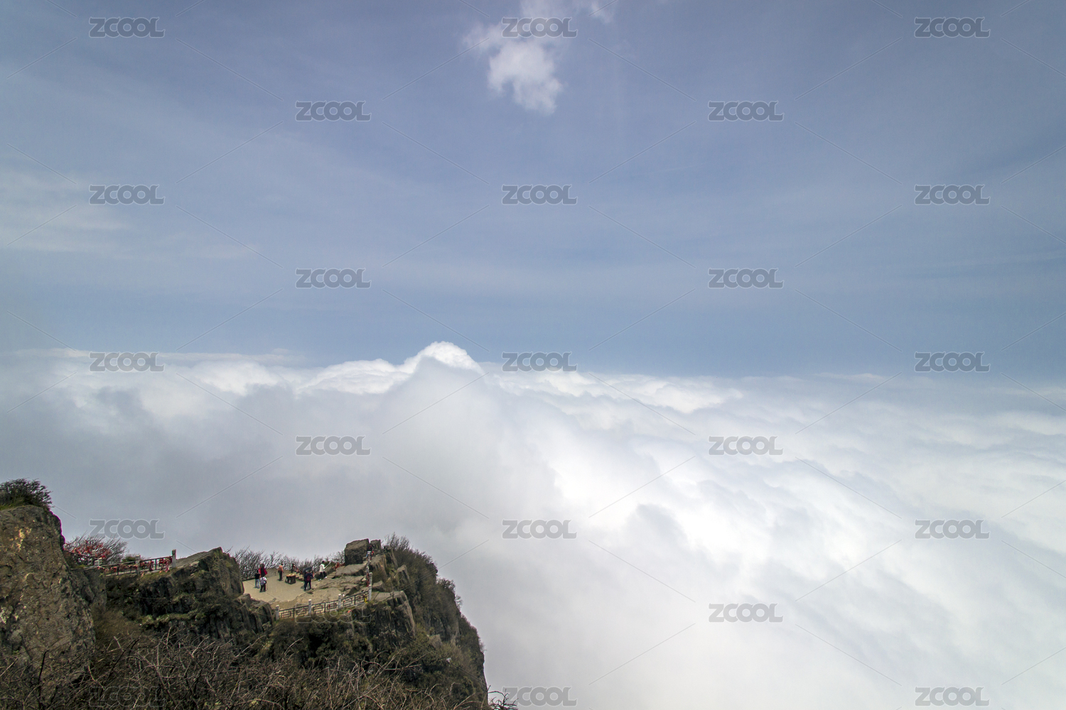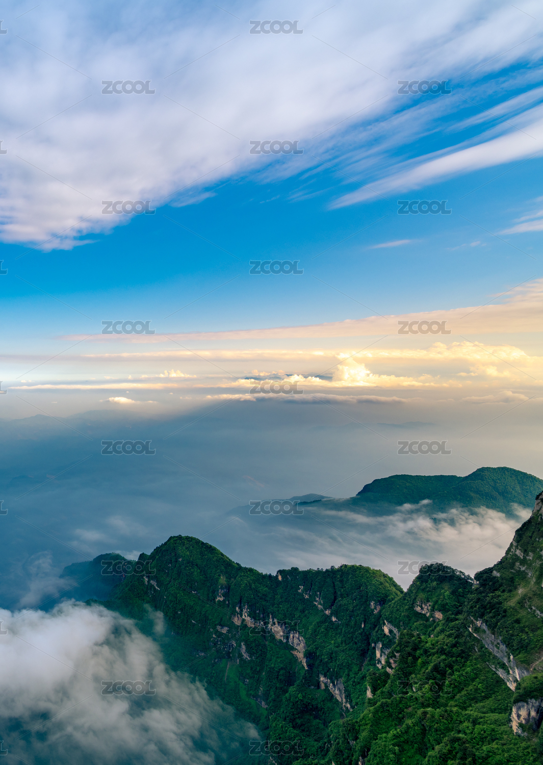 藍天白云下的山峰和云海,中國四川省峨眉山