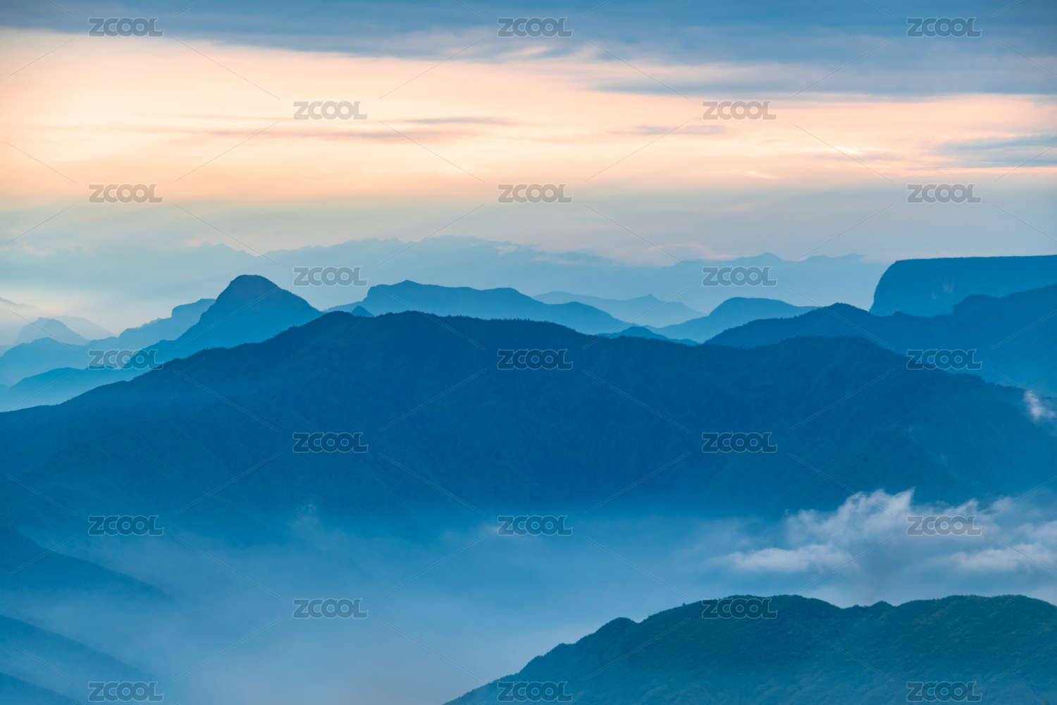 黃昏時分連綿的山峰,中國四川省峨眉山山頂