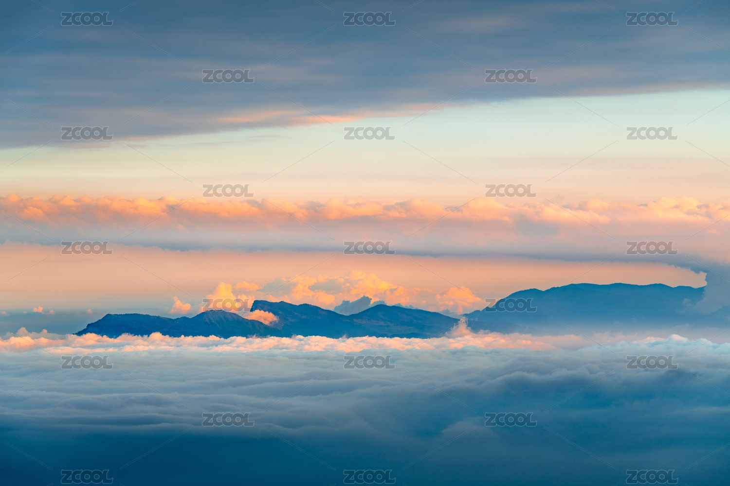 黃昏時分的山峰和云海,中國四川省峨眉山