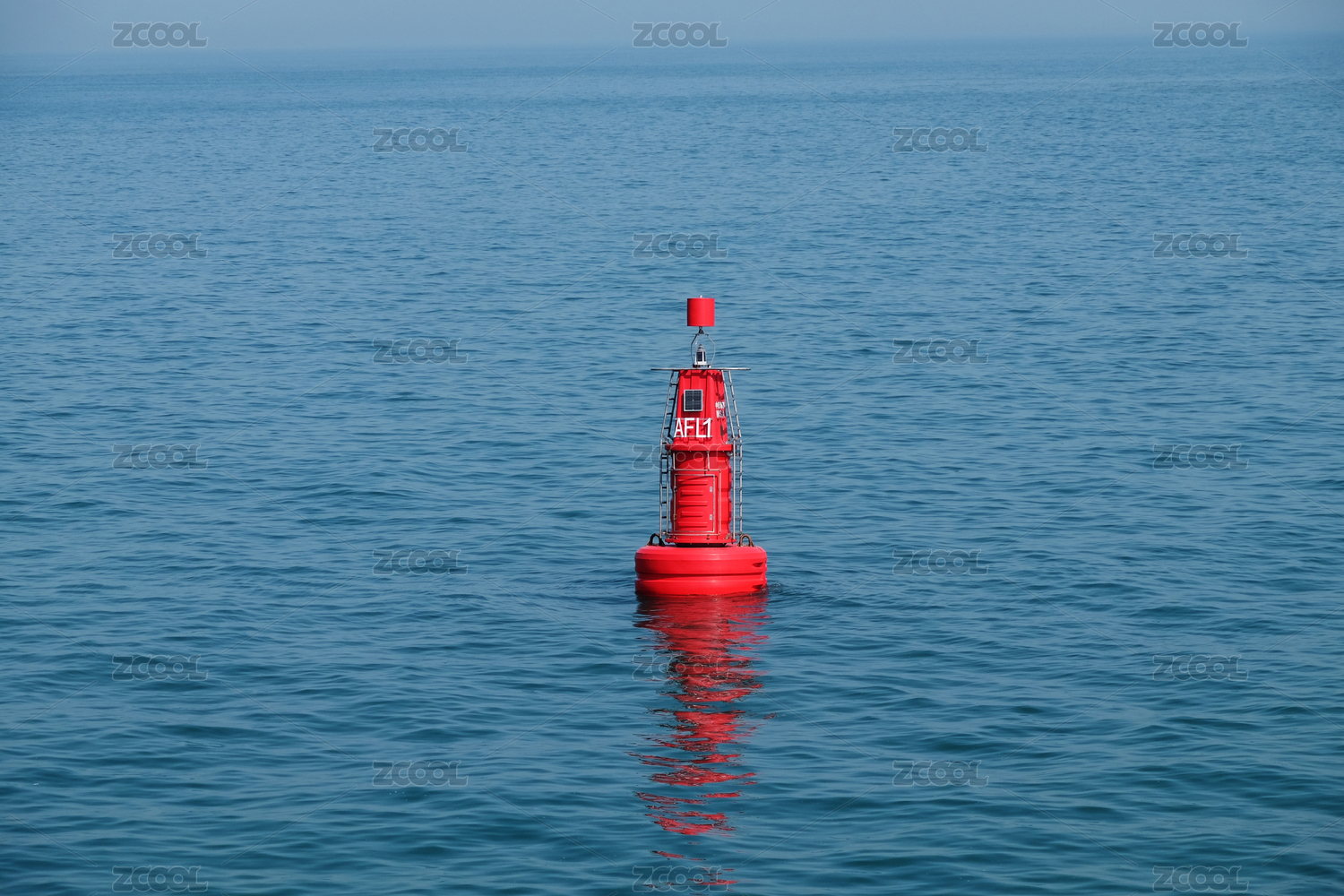 平靜的海面上漂浮的單個浮標