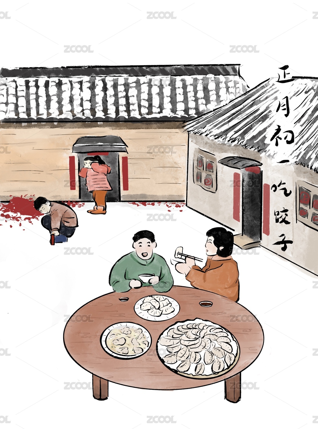 春節(jié)年味小畫正月初一吃餃子