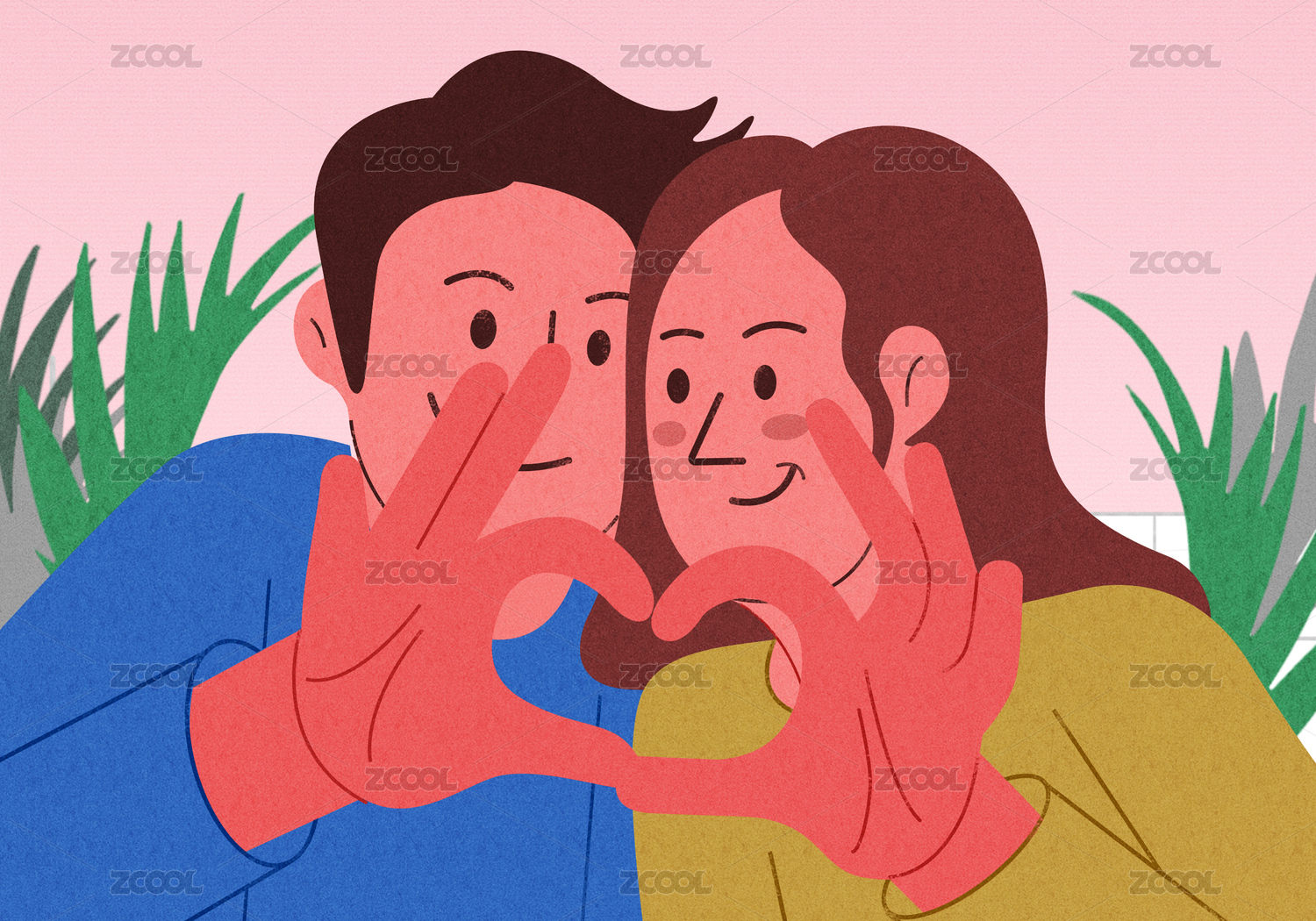情人節(jié)情侶用手比心秀恩愛(ài)插畫(huà)