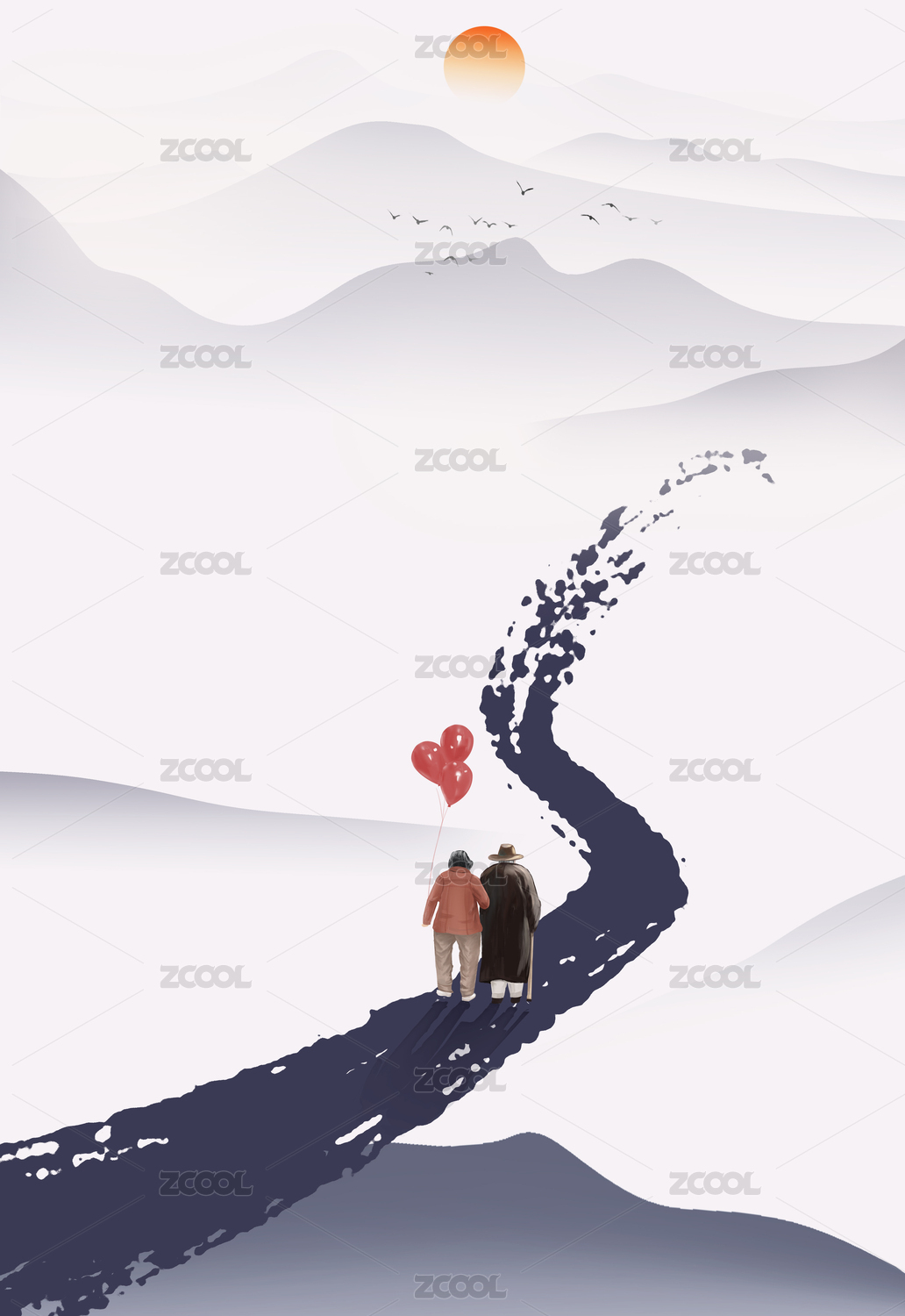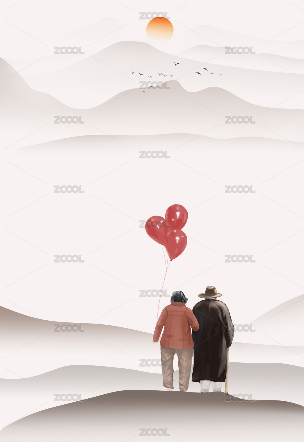 九月初九重陽(yáng)登高恩愛(ài)背景插畫(huà)