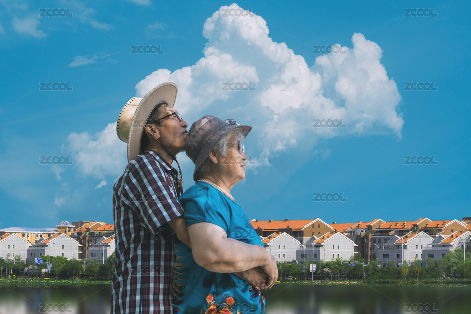 彩色3D卡通人物老年人夫妻恩愛(ài)