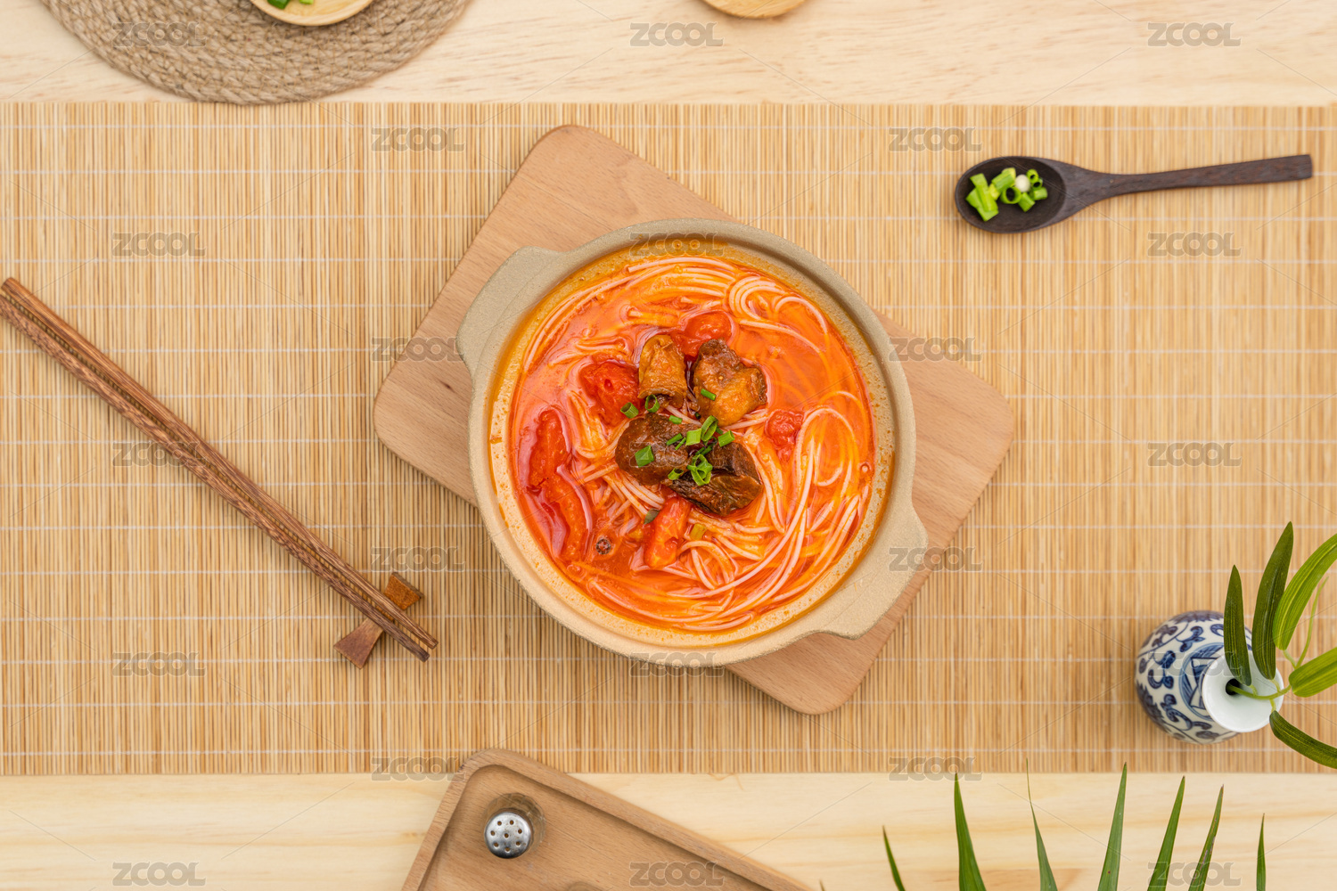 高級(jí)風(fēng)砂鍋番茄紅油牛肉牛雜米線