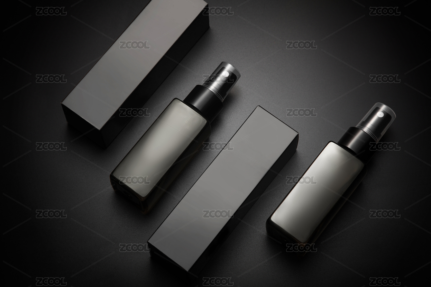 兩瓶男士爽膚水噴霧護(hù)膚品質(zhì)感黑色背景